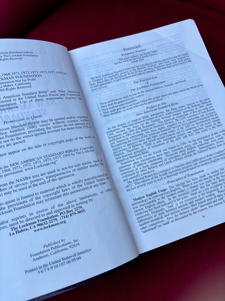 Rare NASB Update Side-Column Reference Burgundy Bonded Leather Printed in USA The NASB is a smooth reading literal English Bible translation, which provides increased clarity and readability for greater understanding while maintaining superior accuracy to the original Hebrew, Aramaic, and Greek texts. Trust, discover, and grow in your faith with the NASB today. The NASB Side-column Reference Bible offers a single-column of large print text for smooth reading across the page and is a great addition for study, note taking, and daily reading. Features: 6 x 9 inch paper trim size and 1 3/4 inch thick at the spine, smyth sewn, single column, verse format text, 11 point text font, concordance, maps, full column cross-references, and 1/2 inch margin. This Bible is a great edition for study, church, or daily reading.