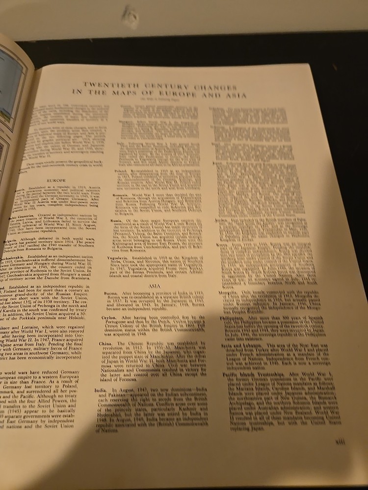 Explore the world with the Rare Rand McNally Premier Centennial World Atlas, a true gem for geography enthusiasts and collectors alike. Bound in a distinguished leather snakeskin cover, this 1955 edition is a celebration of cartographic history, featuring both a USA and world map view. Published by the renowned Rand McNally & Co., this atlas is a testament to the company's legacy and the enduring allure of geographical knowledge. This vintage original is not only a valuable collector's item but also a piece of Americana, embodying the spirit of exploration and discovery. Its pages tell a story not just of the Earth's geographical features but also of the period's publishing craftsmanship. Whether for display or research, this atlas is a treasure trove of historical cartography and a must-have for any serious collection.