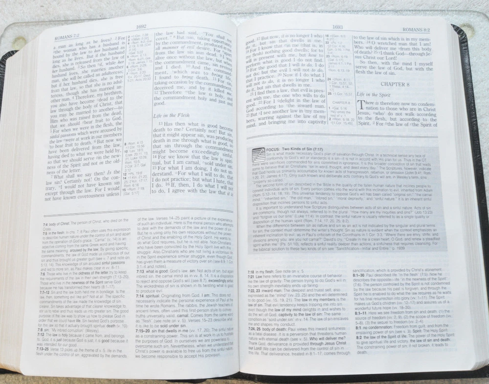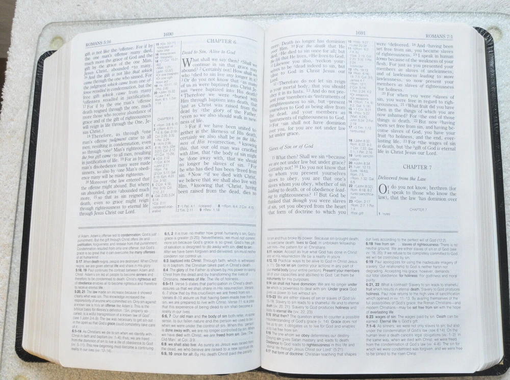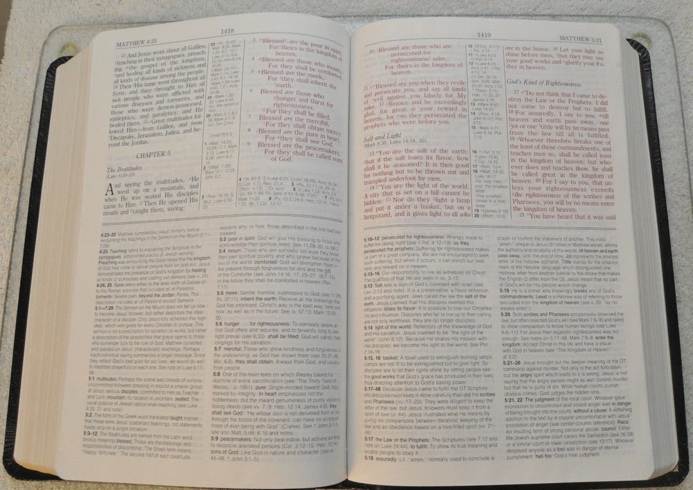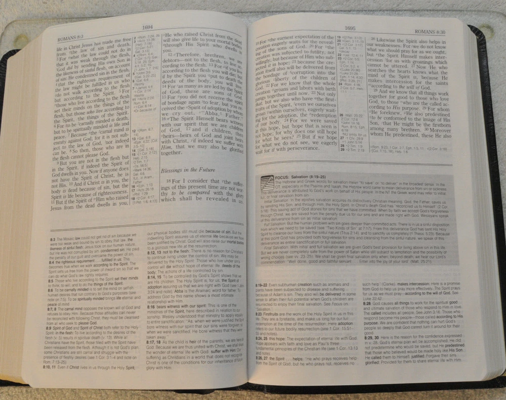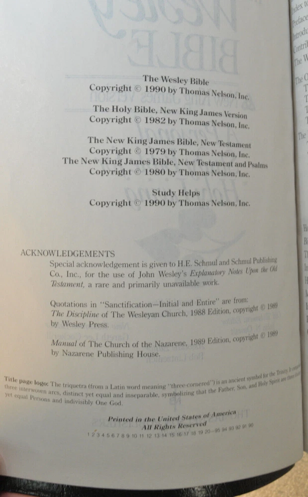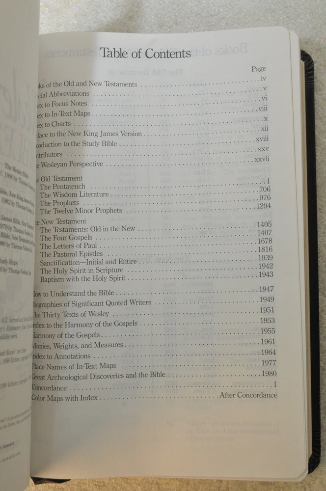 Rare Brand New In Box Unread and Unused: The Wesley Bible New King James Version A Personal Study Bible For Holy Living. This is a First Edition First Printing edition bound in Black Bonded Leather. The front cover is imprinted with the Salvation Army motto and logo. Published by Thomas Nelson Publishing model 985. It is a rare find this Wesley Bible First Edition New in Box 35 years after it's date of publish. This Bible is no longer being published. ISBN 9780840727356. Brand New In Box condition. Imprinted in gold with Salvation Army logo and motto on front cover. Free of any hand written notes or marks inside this Bible. No dog-eared pages. Minimal shelf wear for the box as it was stored during its 35 year wait to be used. Please see all photos for details and condition.