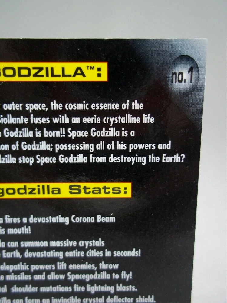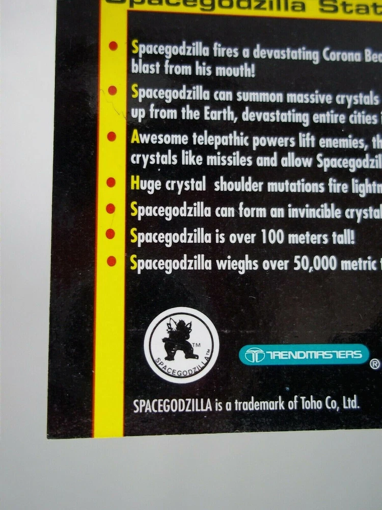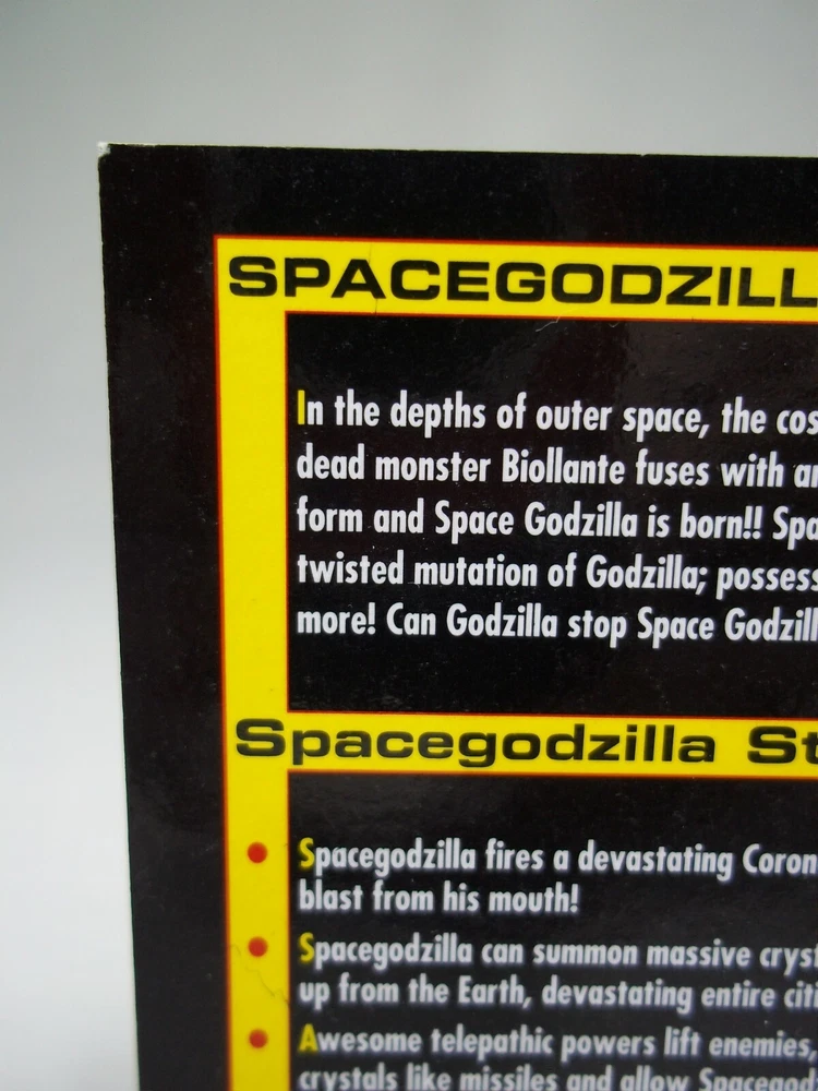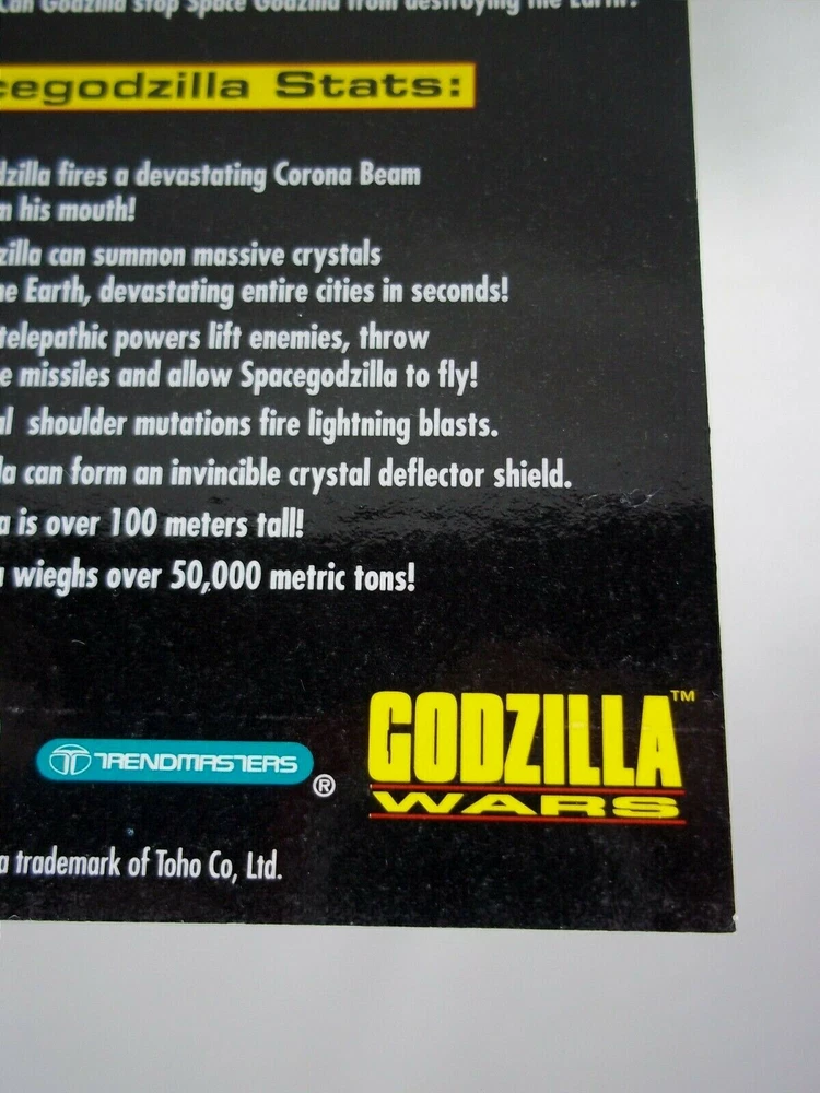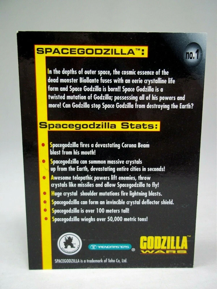 Rare vintage 1995 Trendmasters Godzilla Wars Space Godzilla collector card. It's in good used condition with some wear, flaws and blemishes. Being sold as is. Measures about 2.5" x 3.5". This listing is for the card only. No figure is included. A very hard to find item, small and easily lost, perfect for any fan or collector. You'll receive the same item shown in the picture so please examine the photos to see the condition it'll arrive in. Feel free to message me if you have any questions, thanks for looking! :)
