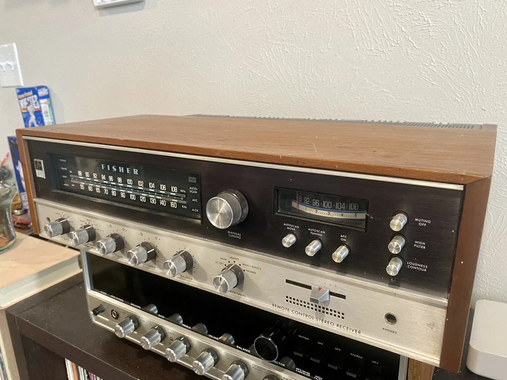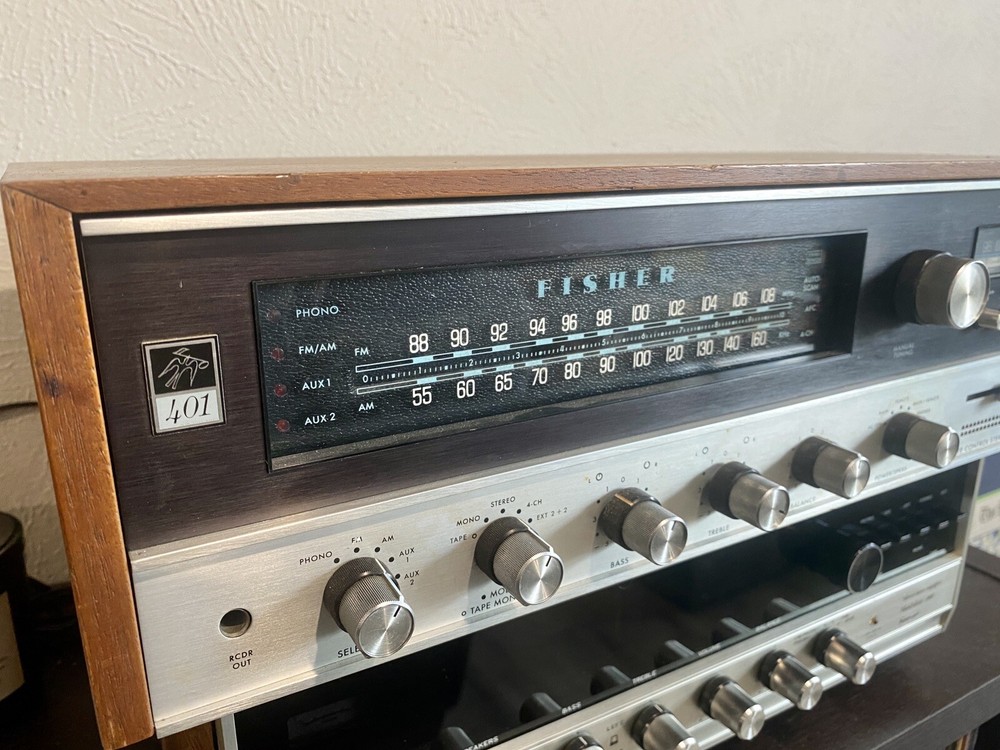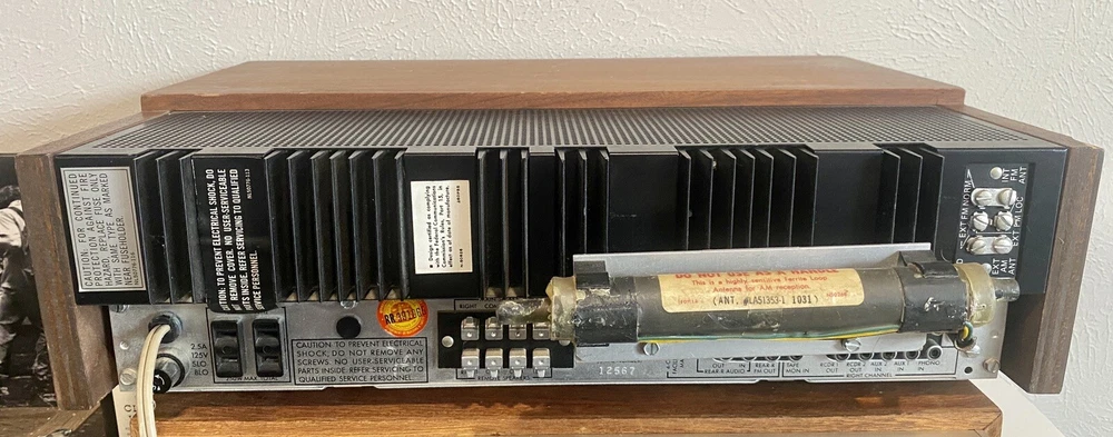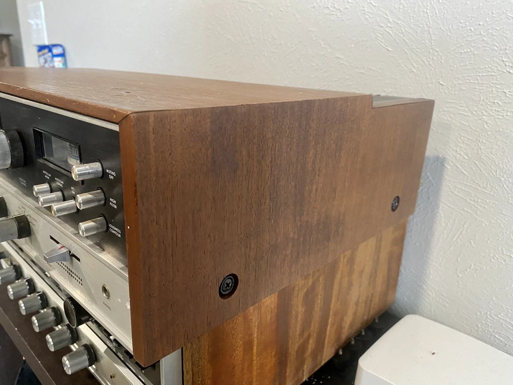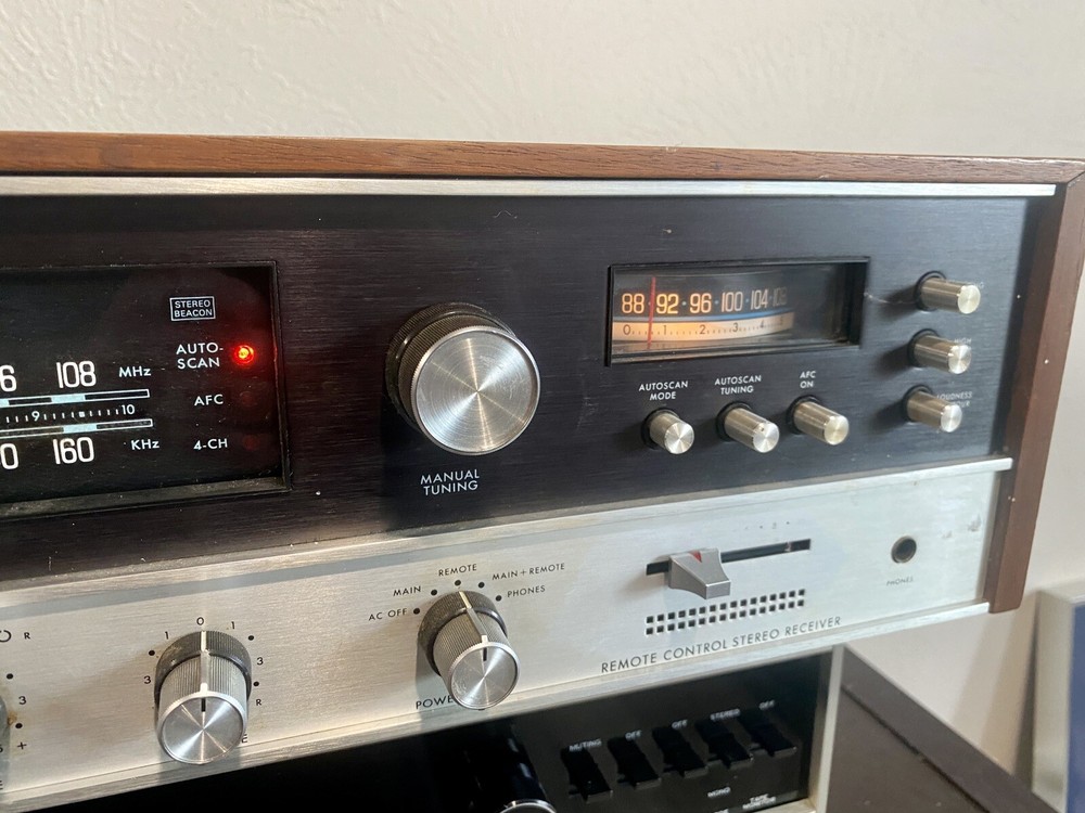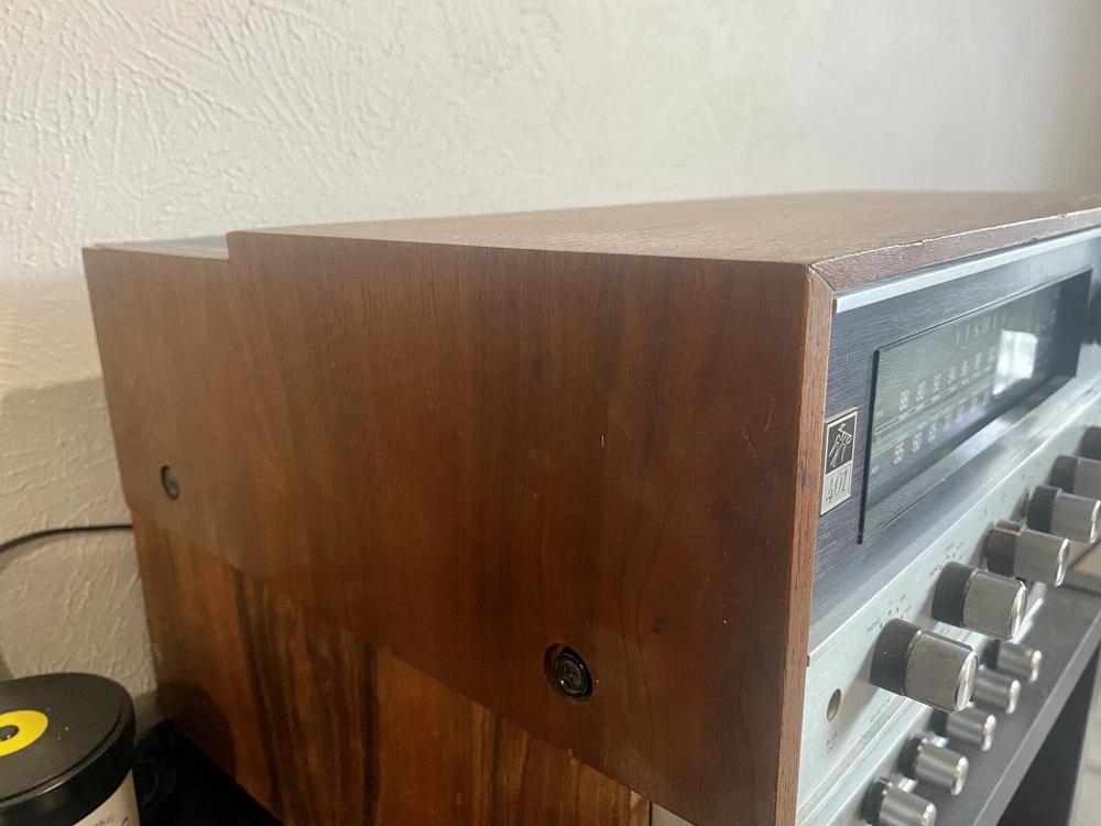 In good working condition with the exception of the tuner. When I turn the knob the dial doesn't move so it's stuck in between channels and all I get is static, therefor this stereo is being sold as is for parts/repair. All other functions seem to work well and I get great sound out of it through speakers and headphones when I plugged my phone into the auxiliary input. Needs a good cleaning but it's in great cosmetic condition with no obvious damage other than what looks like a moisture ring and light scuffing on the wood case. A great candidate for repair! Returns not accepted as you are knowingly bidding on a receiver that isn't fully functional.