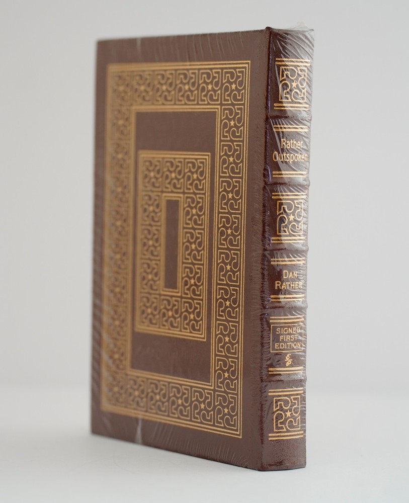 Rather Outspoken by Dan Rather Includes all the classic Easton Press qualities: * Premium Leather * Silk Moire Endleaves * Distinctive Cover Design * Hubbed Spine, Accented in Real 22KT Gold * Satin Ribbon Page Marker * Gilded Page Edges * Long-lasting, High Quality Acid-neutral Paper * Smyth-sewn Pages for Strength and Durability * Beautiful Illustrations IMPORTANT * Only ship to the lower 48 States. * Photos are of the actual item for sale. * Ask for more photos BEFORE the item before you buy. * ALL my books are carefully stored inside in a smoke free environment. * I have almost 50 books on eBay at this time, so please feel free to browse! * ALL my books are shipped in a protective manner! See my buyer's comments.