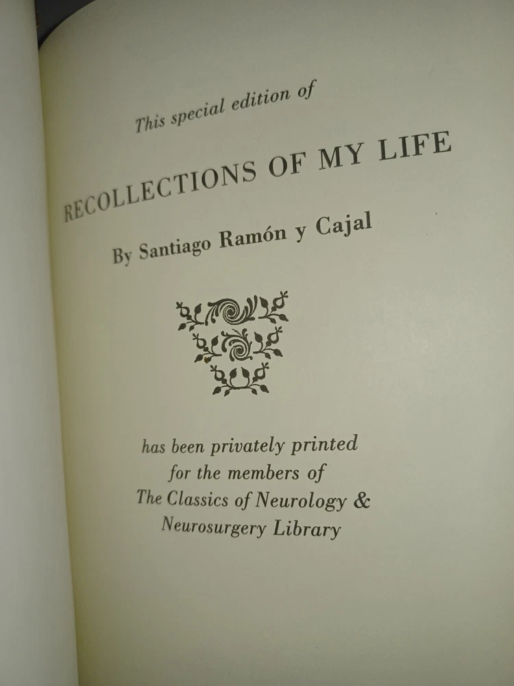 This limited edition copy of Ramon Y Cajal's "Recollections of my life" is a must-have for any collector of classic neurology and neurosurgery literature. The hardcover book features a beautiful leather-bound cover and is in brand new condition. The book was published in 1988, has English language, and comes from the "Classics of Neurology and Neurosurgery Library" book series. It is signed by the author and has a publication number of 236/1000. The MIT Press is the publisher of this amazing piece of literature. This book is a great addition to any personal or professional library, especially for those interested in medicine and health.