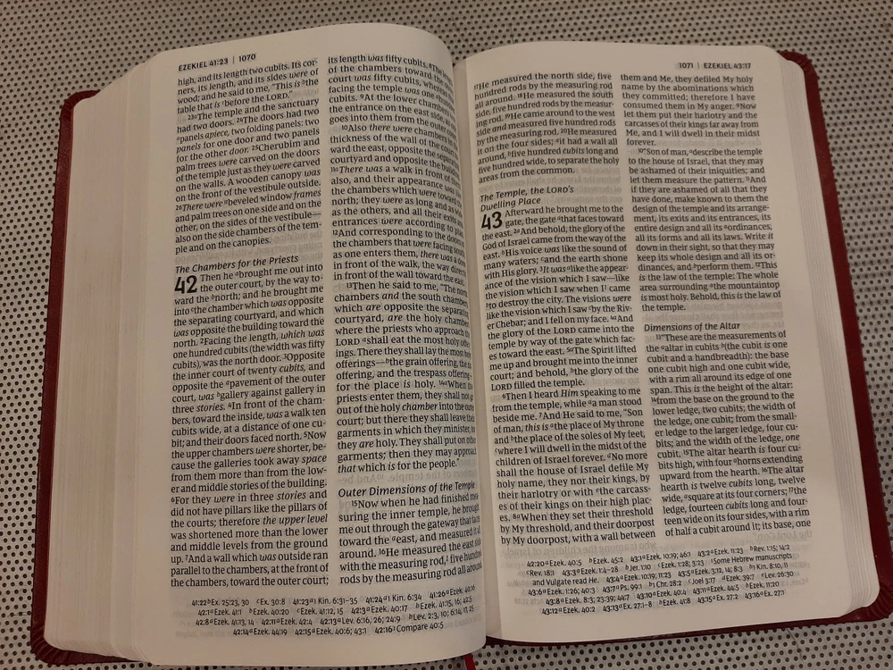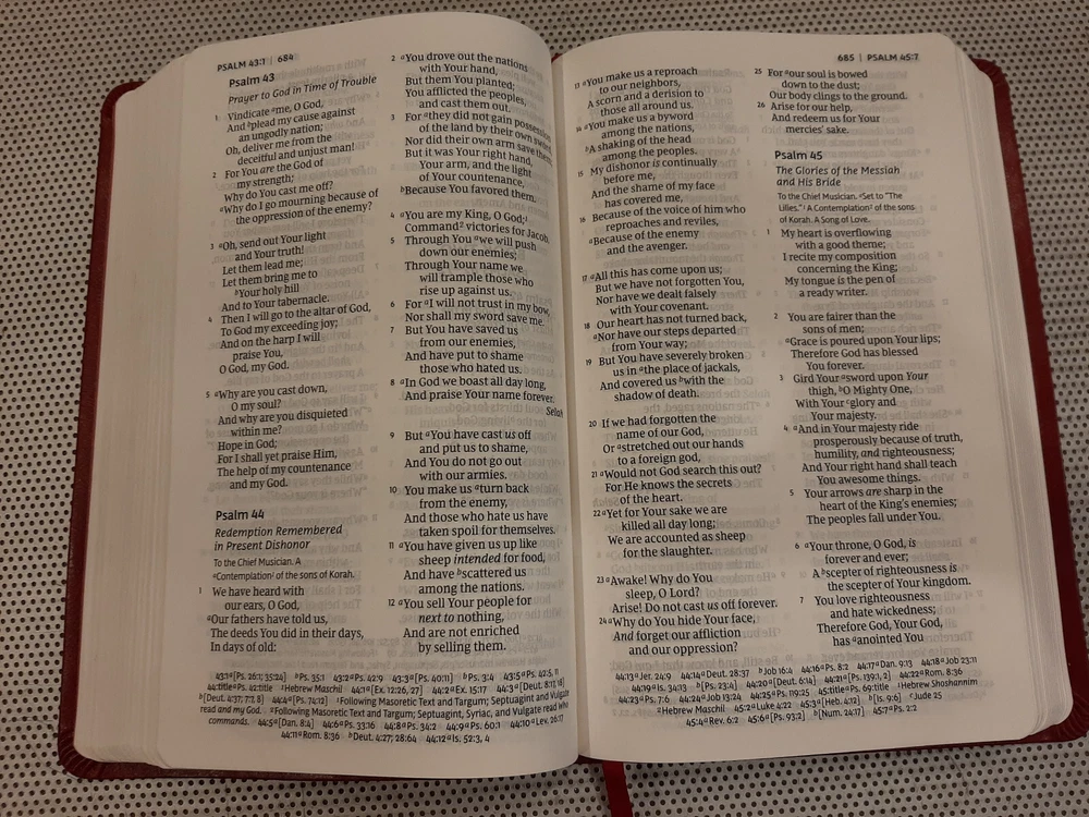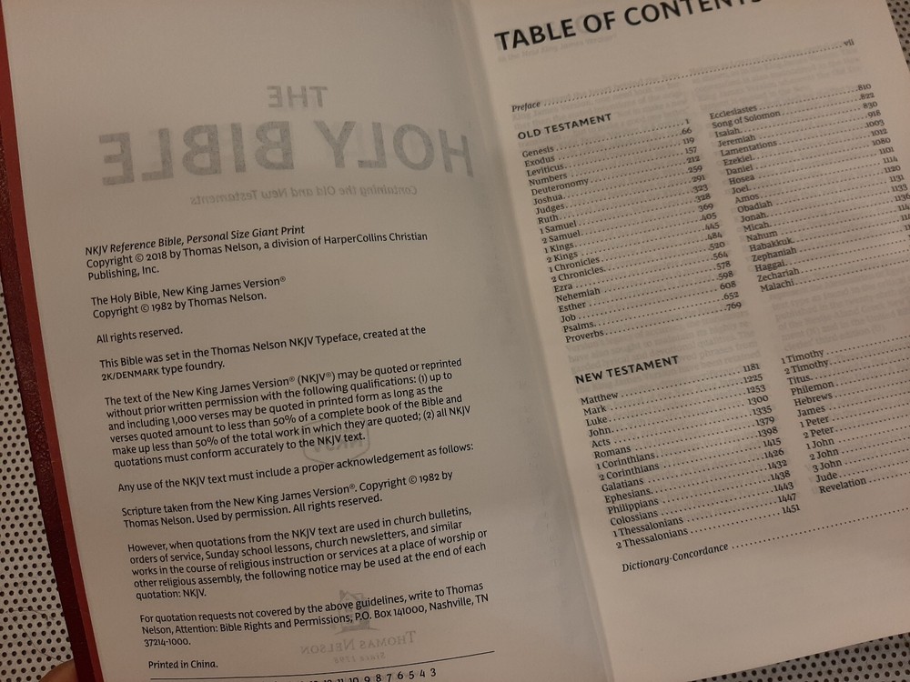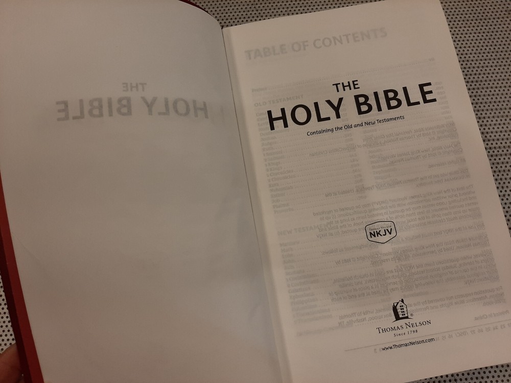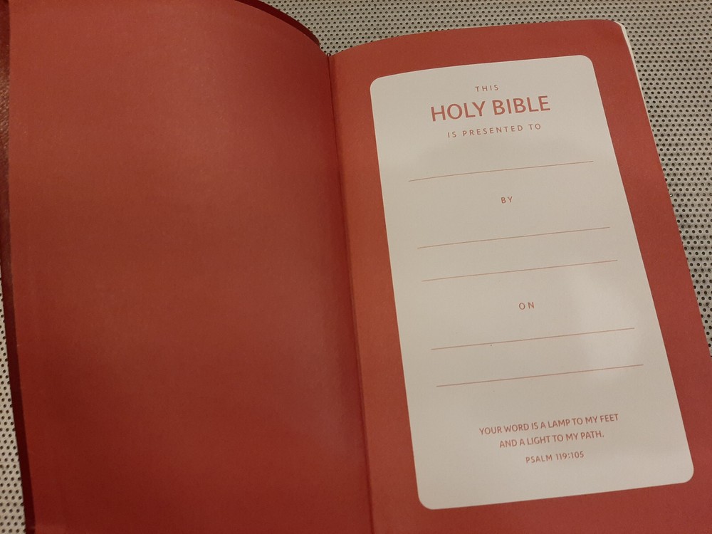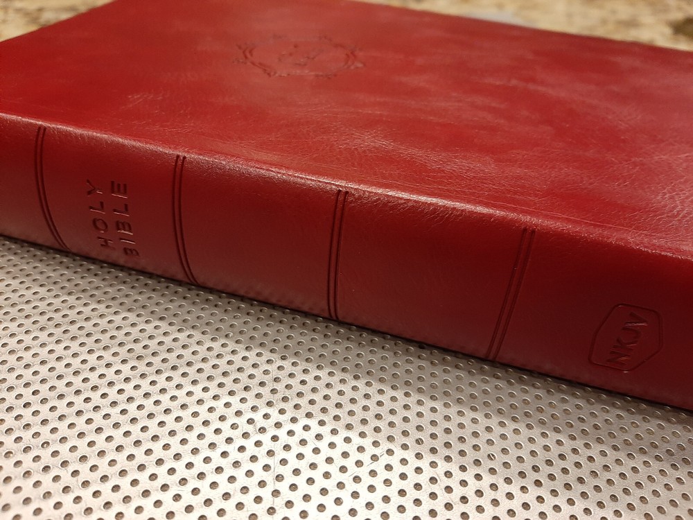Beautiful red faux leather NKJV New King James version Red Letter Holy Bible by Thomas Nelson. Compact size; measures 5.5” x 9”. Easy to read print with maps. Bible is in like new condition ******* Payment is due within 5 days Please contact me with any questions you might have Thank you!