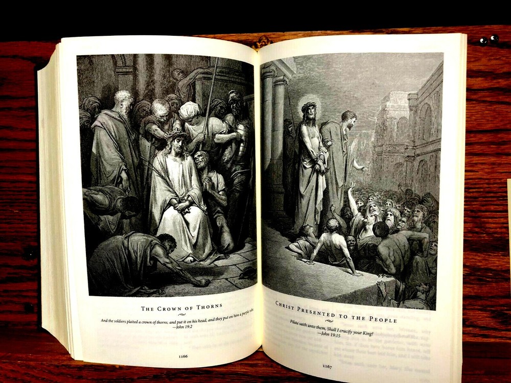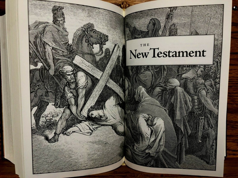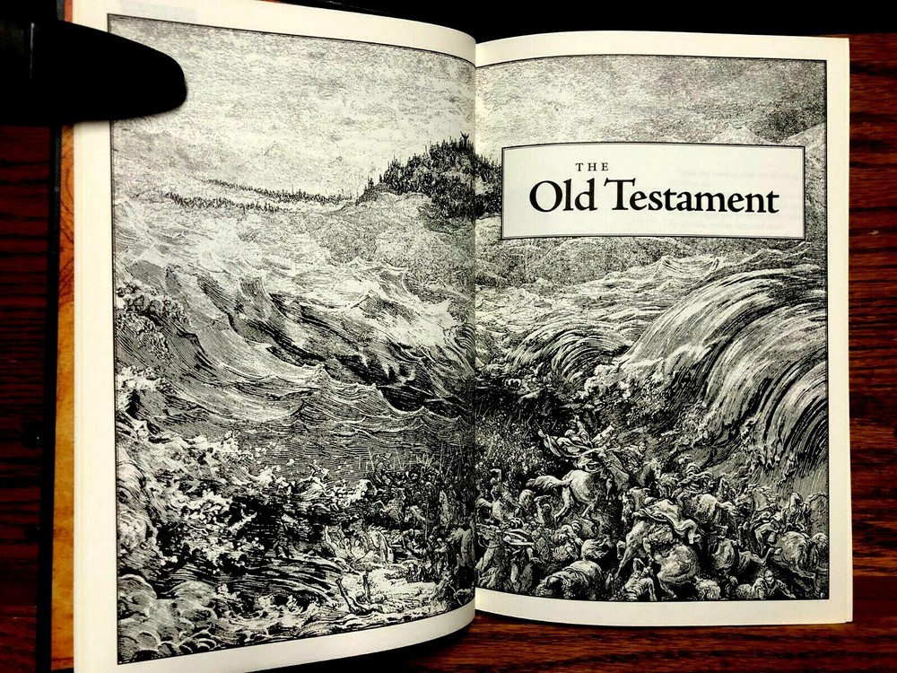 (Reduced Price) HOLY BIBLE A MUST-SEE COPY OF THE HOLY BIBLE FROM BARNES & NOBLE! LOADED WITH BLACK & WHITE WOOD CARVINGS! ONE OWNER - NO HIGHLIGHTING! FAMILY PAGES NEVER FILLED OUT! FIRST THREE (3) PAGES IN PSALMS HAVE SLIGHT UNDERLINING IN RED! (I Suspect my granddaughter did this!) HIGHLY DECORATED BINDING WITH TOOLING AND GILDING! ALL END PAGES GILDED AND PERFECT! BEAUTIFUL END PAPERS! SEE ALL PICTURES! WILL SHIP NEXT DAY AFTER RECEIPT OF PAYMENT VIA USPS PRIORITY MAIL! FREE USPS PRIORITY SHIPPING FOR "BUY IT NOW" BUYER! SIZE 9"x6"x3.25" Heavy (4.5 lbs.)! I am a (DAV) Disabled American Veteran and use the proceeds from my sales to supplement my income! Thank you much for looking at my Sale! I will have a couple more Bibles listed within the next few days or so! Check back often since I'm not that quick on the computer anymore! I will have more household items, collectables, etc. over the next few weeks! I must sell all - will be downsizing my living quarters! All items are from a smoke-free home and will be cleaned prior to shipping! Turning 80 next BD I've just begun the process of cleaning out my personal possessions in order to relocate!