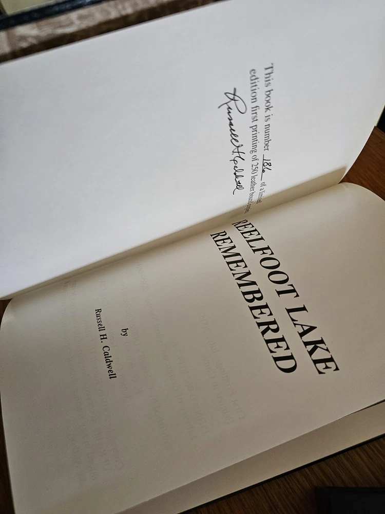 Reelfoot Lake Hardback Remembered by Russell Caldwell NEW DELUXE SIGNED Book. New unread copy Deluxe Leather Hardbound with slip cover Author SIGNED and hand numbered Limited First Edition #186 of only 250 printed hardback book - Reelfoot Lake Remembered by Russell H. Caldwell. This special first edition with blue leather cover and slipcase also has highly reflective gold page edges with blue bookmark, impressed gold lettering on slip cover, book cover and spines, and illustrated boards. Please note: Photographs for this book on the inside were taken from my own. Quoted from the back of other first edition books (paperback and hardback), "Russell Caldwell, born in Union City, Tennessee, received his formal education in the Union City School System and the University of Tennessee at Martin. From boyhood, many months of each year have been spent at Reelfoot Lake. A Man of great enthusiasm, Russell pursues with a passion, both his work as a businessman and his "great love of the hunt". In addition to hunting the Mississippi Flyway each year for ducks and geese, he has traveled to Texas, South Dakota, Canada, and canvassed the eastern shore in pursuit of waterfowl and other "Feathered friends". Condition: Slight shelf wear from years of storage (please refer to photos) Chapters of this interesting and informative book include: The History Before the Quake The Legend of Reelfoot The Earthquake The Early Years of Reelfoot A Three Day's Trip Around Reelfoot Lake The Night Rider Era and State Ownership Boats by Calhoun The Bicycle Spoke Reels Reelfoot Lake Duck Camps and Clubhouses Union City Outing Club Dixie Rod and Gun Club Blue Wing Club Black Jack Hunting Club Fulton Red Wing Club Caldwell's Shady Rest Reelfoot Lake 2005 Reelfoot Lake Duck Calls Victor Glodo Perry Hooker Tom May The History of the Cochran Family Cloyd "Sharpie" Shaw There are many more subchapters headed by: Success Journeys Mentors Quotes Stories - Poems - Essays Hunting Tales Guides - Scribes - Gunners Finishing Up Acknowledgements Author's Notes Hardbound Special Leather Edition 310 Pages Publisher: Caldwell's Office Outfitters (2005) ISBN-10: 0962303976 ISBN-13: 978-0962303975 Dimensions: 9.25 x 6 x 1.25 inches. Reelfoot Lake Hardback Remembered by Russell Caldwell NEW DELUXE SIGNED Book. Please refer to the photos prior to bidding.