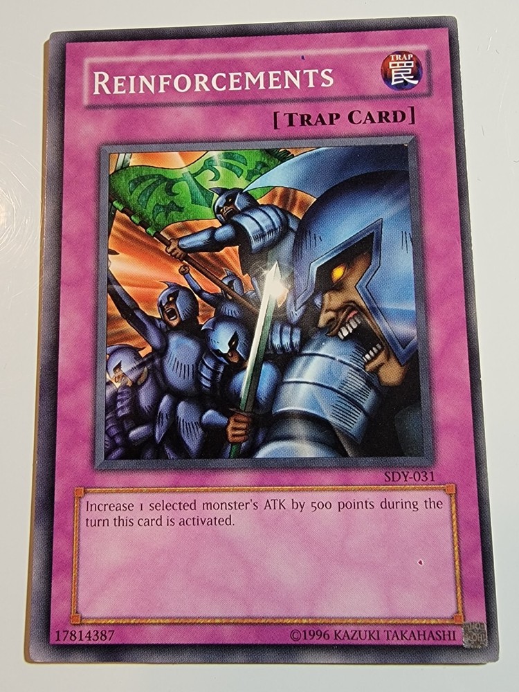 Reinforcements - SDY-031 Common Unlimited Yugioh. Overall lightly played condition. (Please reference pictures for c osmetic condition). Take advantage of our multi item discount!!! When you buy 2 items you will have the opportunity to select a 3rd item of equal our lesser value for free from our whole inventory. (Must use Ebay's shopping cart feature in order to take advantage of this discount). If you have any inquiries please feel free to message us and we will respond as soon possible, usually within 24 hours. SHIPPING We almost always use USPS as our primary SHIPPING service. We ship within 24 hours of receipt of payment and will always provide tracking, unless otherwise stated in the listing. (We reserve the right to use a different carrier or service). FEEDBACK Your FEEDBACK is important to us as a growing small business. If for any reason you are unhappy with your transaction, please message us and we will do everything in our power to make it right. Returns Returns are accepted within 30 days of confirmation of delivery. If there is anything you are unhappy about with your purchase please message us and we will respond within 24 hours to your concerns. Thank you for supporting our small business. We appreciate your valued business with us and look forward to serving you in the future. Dan & Tonya Dio's Eclectic Treasures