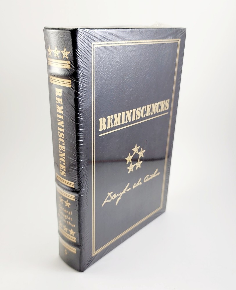 Reminiscences MacArthur, General Douglas Norwalk, Connecticut: The Easton Press, 2001. Bound in rich full leather with extensive gilt decoration on the spine and both boards, raised bands on the spine, archival-quality paper, and a satin ribbon bookmark. 8vo – 6 ½" x 9 ½". 438 pp. New. Still sealed in the publisher’s original shrink wrap. Be sure to take a look at my store for similar items. Please feel free to ask any questions. Payment is requested as soon as possible. Shipment is made when payment has cleared. We will gladly combine shipping on multiple items to save on shipping costs. 100% Satisfaction Guaranteed - If you are not satisfied with your purchase, please contact us within 30 days of receiving the item. We consider a sale final after 30 days. All items must be returned with their original materials to receive a refund. Shipping is non-refundable.