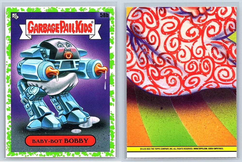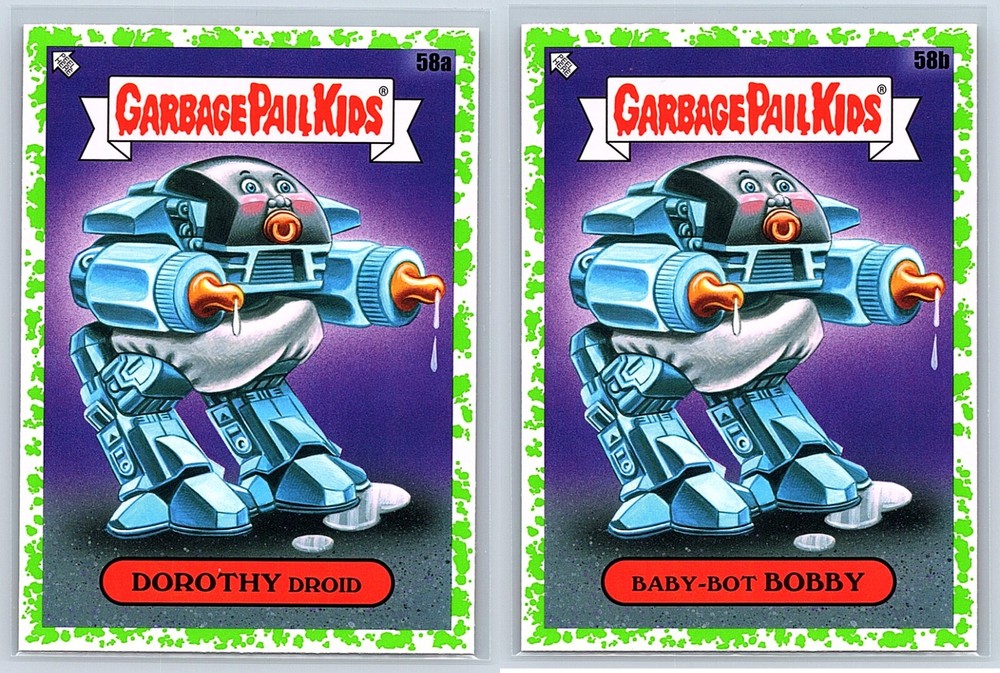2023 Topps Garbage Pail Kids Series 2 - Intergoolactic Mayhem 2 Card Set - Includes BOTH cards pictured: Dorothy Droid 58a & Baby-Bot Bobby 58b! Perfect for Christmas & Birthday Gifts, Gags and Fun! Check out our Seller Page for more GPK Cards! Images are representative of cards received. These cards are Pack FRESH and in Near Mint (centering and condition) or Better! Shipping Information ***Will ship FAST (I drop off orders at USPS daily before last pickup except Weekends) Item will ship properly in a TOP LOADER/Sleeve with TRACKING! I have years of experience shipping thousands of cards successfully all over the world. ***In order for us to provide affordable GPK Global option, International Shipping will ship via USPS International Basic Mail and may not have tracking depending on value of order.*** Combined Shipping discounts for International!! Affordable rates / Safest Delivery! See reviews **I am not responsible for any custom fees/Import taxes etc. Please contact your local country contacts for any additional Import fees. ***Please FOLLOW our GPK Seller EBAY STORE for exclusive Deals and Promotions.*** Thanks for supporting small business!