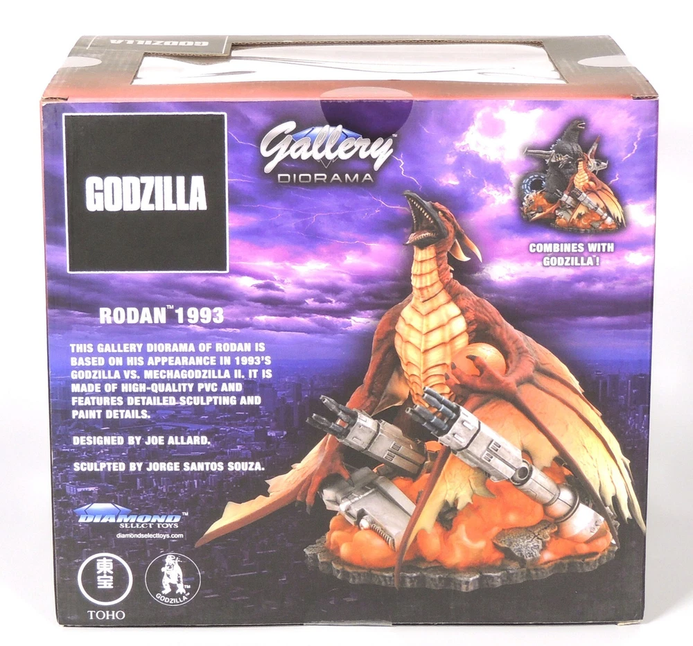 Rodan 1993 Diamond Gallery PVC Diorama Godzilla 65th Anniversary SEALED , New in Box Based on 1993’s Godzilla vs. Mechagodzilla II Measures approximately 8 inches tall and is cast in high-quality PVC. Displays by itself or as a pair with the Godzilla 1993 diorama Designed by Joe Allard, sculpted by Jorge Santos Souza by Diamond Select Toys (2019) Condition: New, in original sealed packaging. Minor storage wear in the form of scuffs, scratches, dings & dents to box. Please see accompanying pictures. (PHOTO OF ITEM OUT OF BOX IS A STOCK PHOTO) Dimensions (approximately): Statue: 8" Tall You may be interested in our other listings on eBay. Check them out! DISCLAIMER UPDATE: March 2023 NEW: We will no longer be selling to locations in Mexico due to constant delivery issues and lack of tracking information availability. All other locations: Please be aware that you may experience a delay in shipping when using USPS service based on USPS' ability to process shipments during peak volume times and/or holidays. We offer a 30 day return policy. Please contact us immediately if there is a problem with your order. A photo of any damage may be requested if needed. PLEASE READ PRIOR TO PLACING YOUR BID TERMS AND CONDITIONS WINNING BIDDER PAYS ALL SHIPPING CHARGES. ORDERS SHIP VIA USPS & UPS FOR DOMESTIC ORDERS. INTERNATIONAL ORDERS ARE SHIPPED VIA USPS. (WE WILL NOT PROVIDE SHIPPING QUOTES FOR DOMESTIC OR INTERNATIONAL) NO INFLATED SHIPPING CHARGES WE WILL NOT UNDERSTATE VALUE OF ANY ITEM ON A CUSTOMS FORM, OR MARK AS A GIFT WE OFFER COMBINED SHIPPING. YOUR INVOICE WILL BE COMBINED IF MULTIPLE ITEMS WERE WON THAT WEEK. YOU WILL ONLY BE CHARGED THE ACTUAL SHIPPING COST. WE WILL COMBINE ANY ITEMS THAT CAN SHIP TOGETHER. LARGE ITEMS MAY REQUIRE AN ADDITIONAL PACKAGE TRACKING INFORMATION WILL BE SENT ONCE PACKAGES ARE PROCESSED RETURNS: 30 DAY RETURN POLICY. IF ITEM NOT AS DESCRIBED FULL REFUNDS OF PURCHASE PRICE WILL BE ISSUED EXCLUDING SHIPPING CHARGES AFTER 30 DAYS ALL SALES ARE FINAL PLEASE READ PRIOR TO PLACING YOUR BID Frequently Asked Questions When will my item ship? Will it be packed securely? ALL purchases are PROFESSIONALLY packaged and are processed for shipping before the end of the next available business day, usually shipped within 24 hours or less, once we receive CLEARED PAYMENT. Holidays and severe weather may delay shipping by a day and during a particularly busy week shipping may take an extra day. We appreciate your patience in these instances. Do you have any more pictures available you can send? We have provided the best quality and quantity of image that we are capable of providing. Items are listed a week in advance of the auction and NO OTHER PICTURES ARE AVAILABLE. Will you end auction items early? We will not accept any offers to end an auction early. We do not end auction items early in an effort to be fair to all bidders. Do you combine shipping for MULTIPLE ITEMS won? YES! WE ALWAYS COMBINE SHIPPING! Customers from MD, PA, VA, NJ, NY, CA, and IL, must pay applicable sales tax BY BIDDING ON THIS ITEM, YOU AGREE TO THE TERMS ABOVE AS STATED.