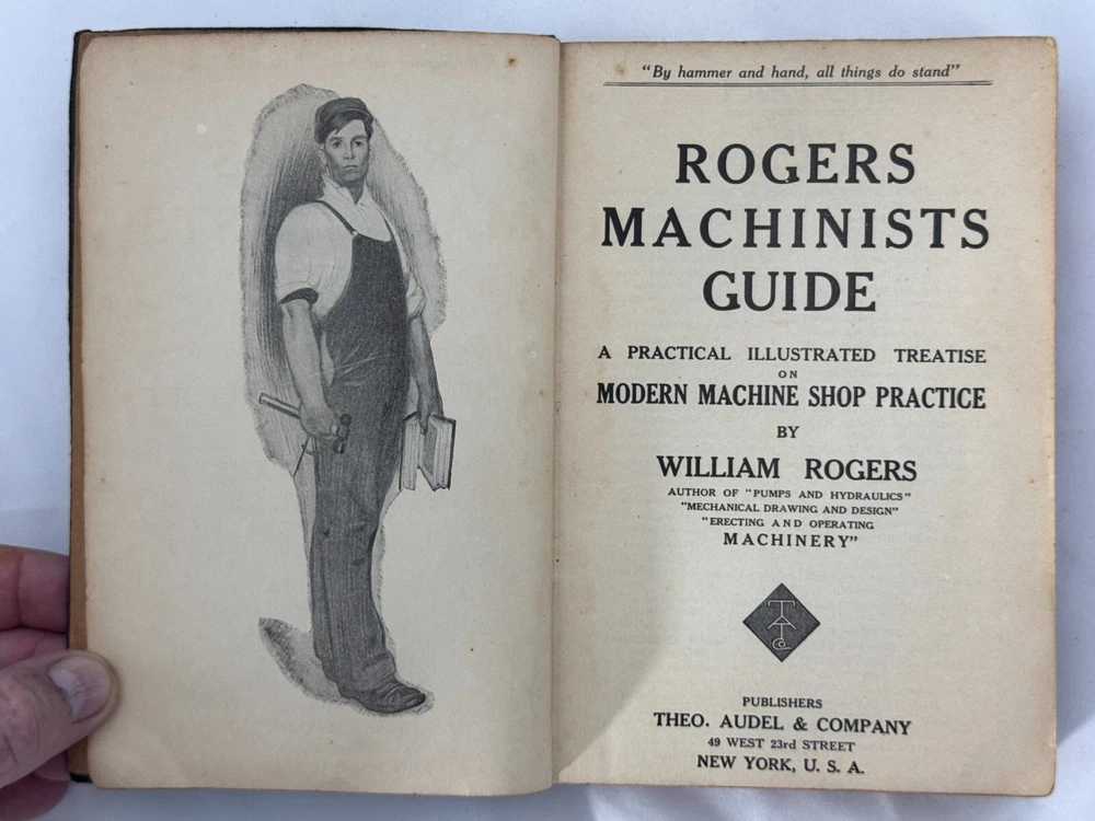 Nice leatherbound copy of Rogers Machinist's Guide on Machine Shop Practice, printed in 1940. See photos for condition details. This is the item you will receive. Message me if you need additional photos , measurements, or information. We use recycled packing materials whenever possible. Buy with confidence. We have been an ebay seller since 2001 and have 100% positive feedback.