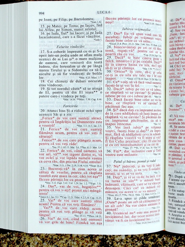 ROMANIAN BIBLE Biblia sau Sfinta Scriptura Cornulescu Version with references Ribbon Marker, and Words of Christ in RED Updated Spelling THUMB INDEX Cu Trimiteri Cuvintele lui Isus în Roșu Revizuită ortografic New Copy – Black Genuine Leather, Gold Lettering. Includes both the Old Testament and the New Testament Includes References . 5” X 7 1/4” X 1 1/4” 7 pt print 1223 pages ISBN 9789738792821 The hardcover Bible has the same ISBN as the Leather option 2015 This is produced by Romanian Bible Society, Societatea Biblica din Romania. This Bible is new and in excellent condition. I ship within 2 days of payment. Please check shipping options for the one best suited for your need and region. I list 3-4 option to select from for shipping. Money back (purchase price) if not satisfied. Email me to notify me that you are sending the item back in as-sold condition. Return Postage is responsibility of buyer Thank you for looking!