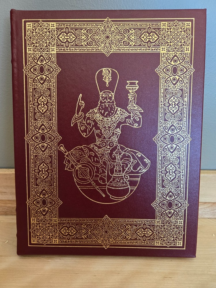 This product is a brand new leather bound edition of "Rubaiyat of Omar Khayyam" by Omar Khayyam, published by Easton Press. It is in brand new/never been read condition. It is a collector's edition intended for an adult audience, containing observations on love, death, God and other topics. The novel is in English language and comes in a hardcover format, making it a valuable addition to any literary collection.