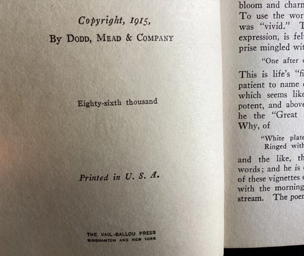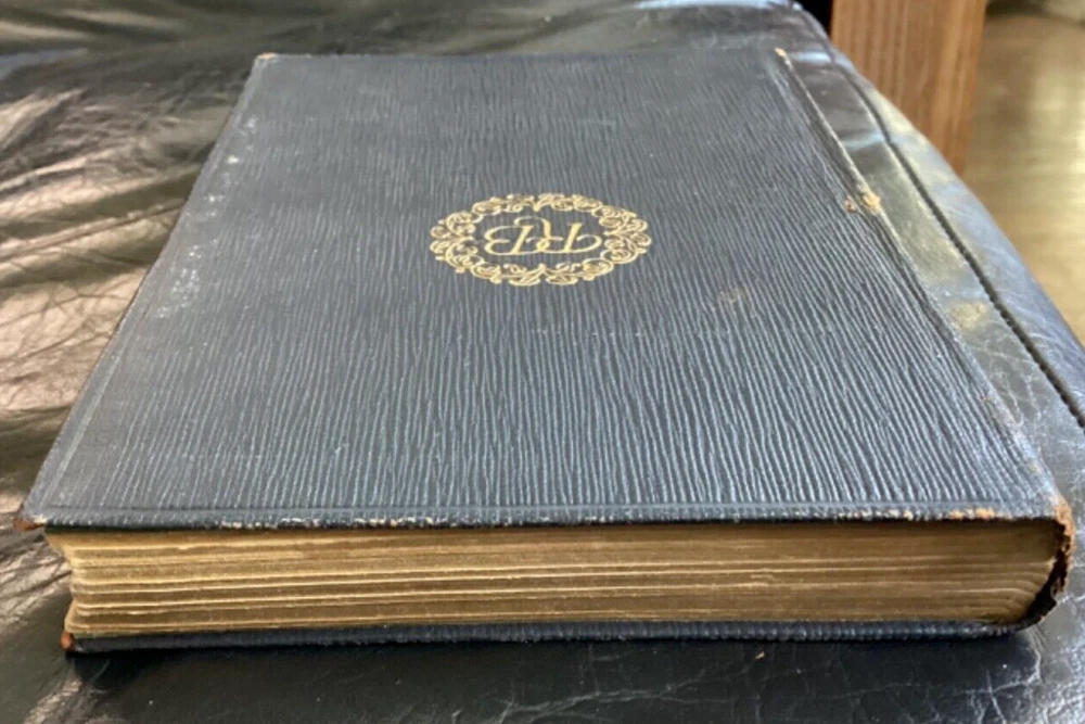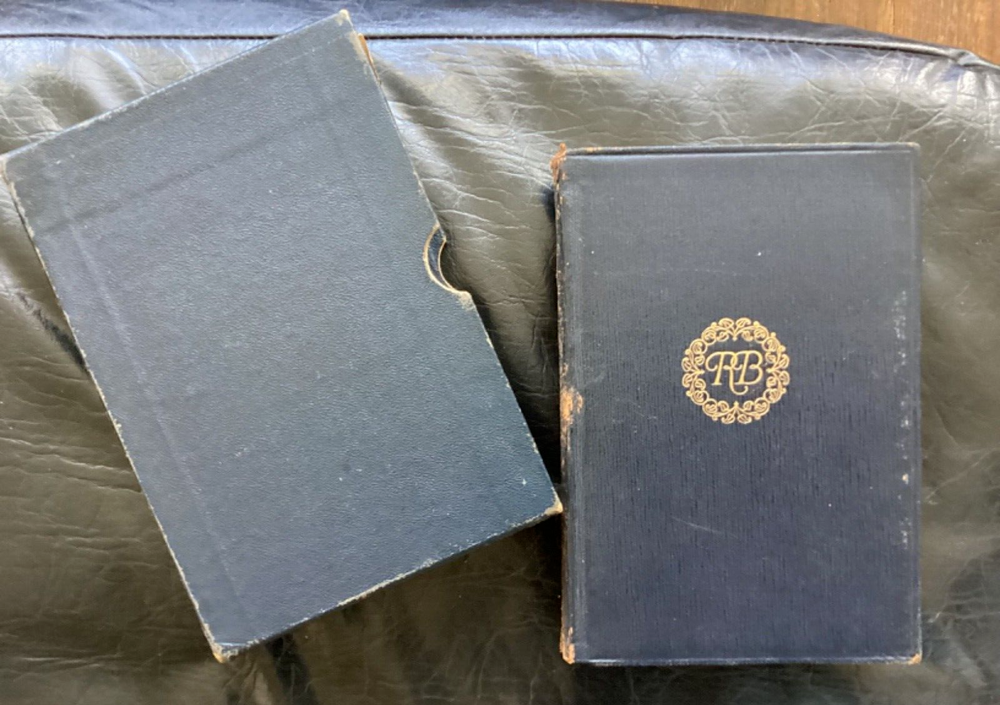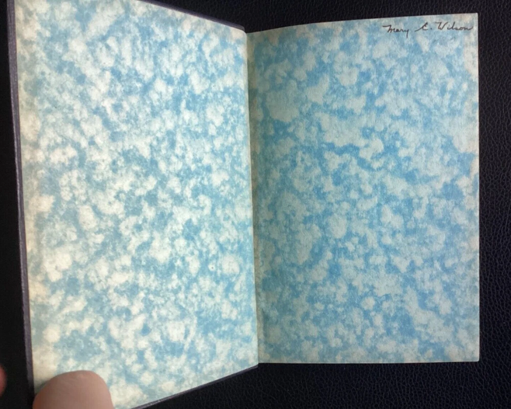 Good condition. Vintage book. 1928. No evidence of book having been read. No writing in book except small signature of previous owner (See photos). Gold lettering and designs on cover and spine. Leather covers. Protective original slipcase included. Book has been in storage in a house for decades. No evidence of loose pages. Pages in nice shape. Some signs of aging, especially exterior spine. (See photos.)