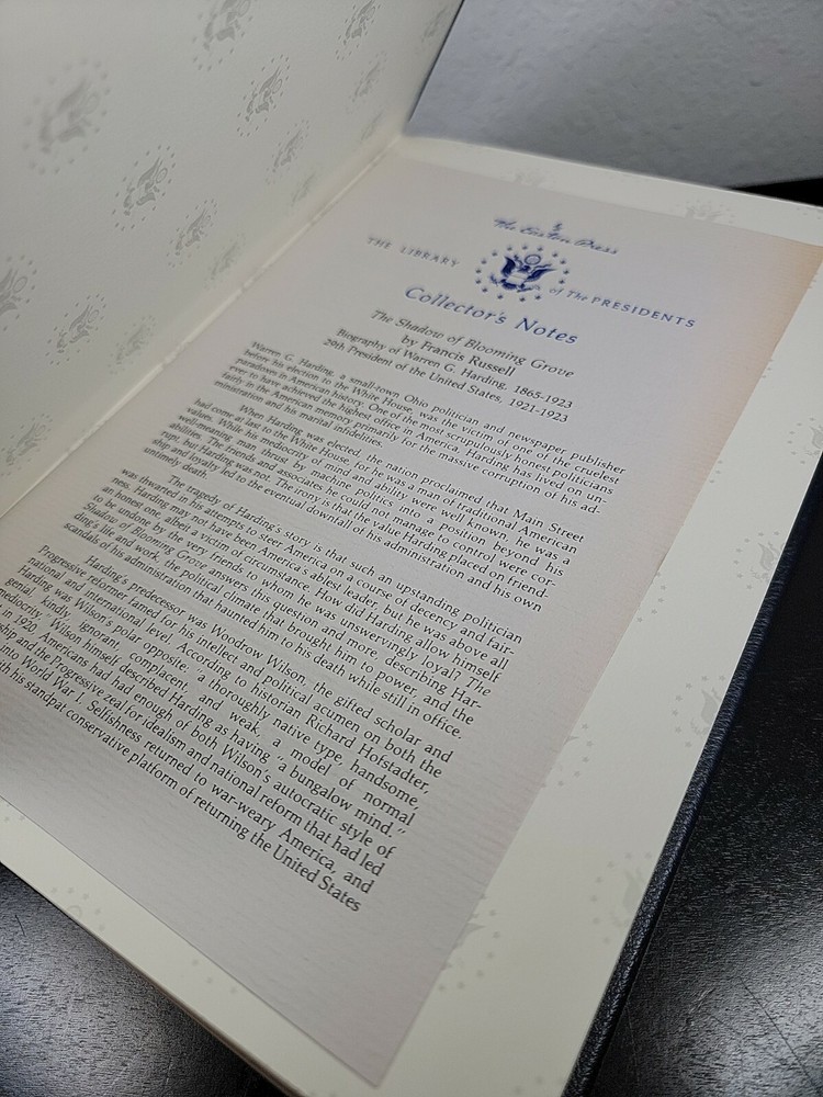 Russell THE SHADOW OF BLOOMING GROVE Warren G. Harding Easton Press Presidents. Excellent Condition! There is a nameplate inside. See photos for details...