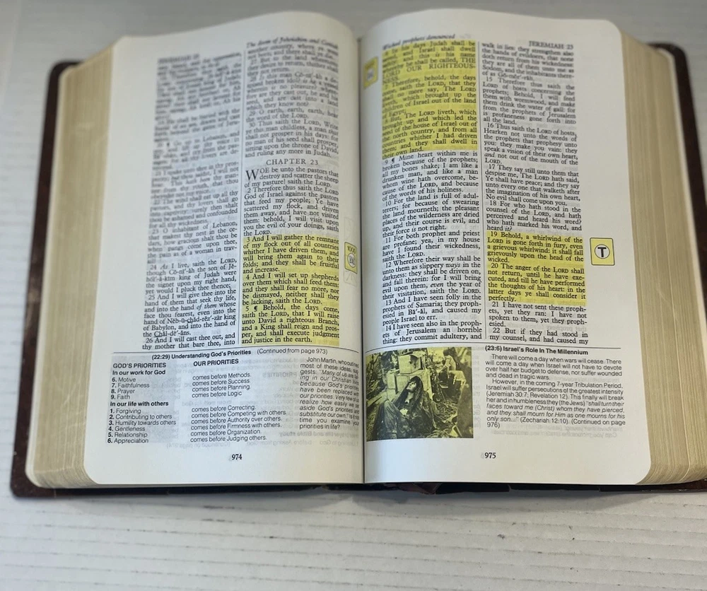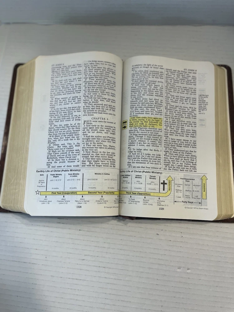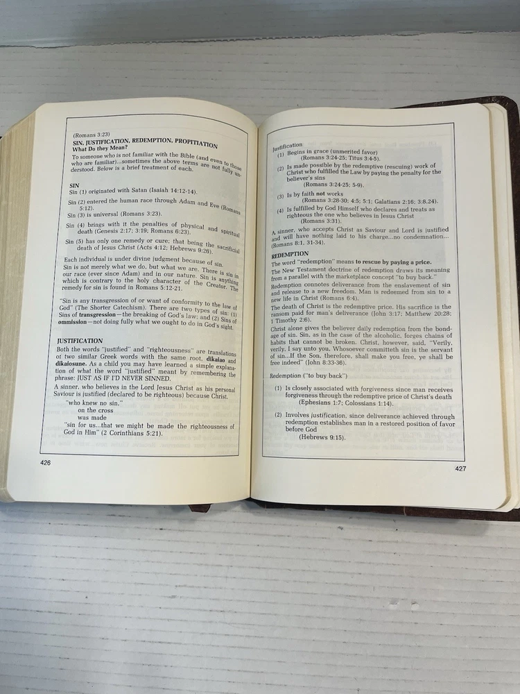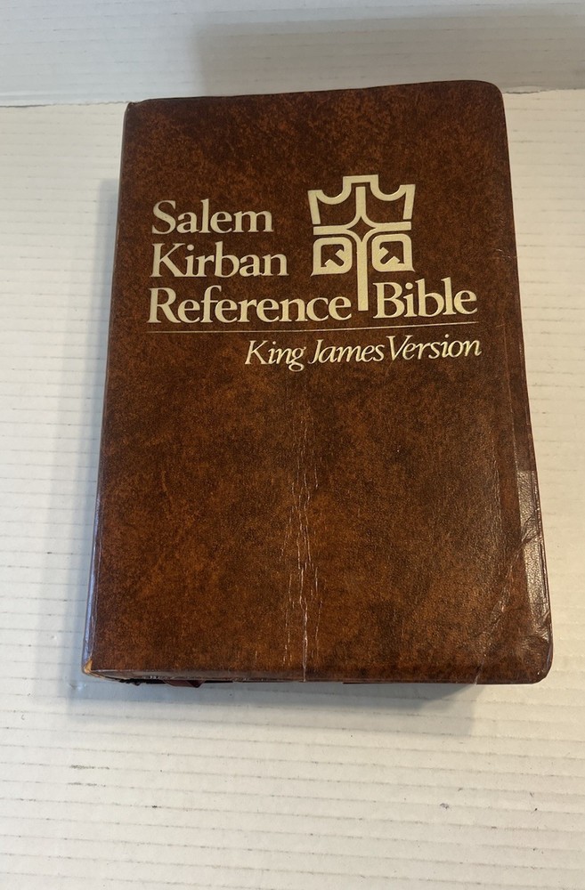 The SALEM KIRBAN REFERENCE BIBLE is a leather-bound hardcover book published by Salem Kirban in 1979. This Bible, with illustrations included, is a valuable resource for those interested in biblical studies and general religious topics. Main text is in excellent condition. Just had writing on presented to page. Light wear to covers. See photos. FROM A SMOKE FREE HOME… Check out my other items! I have good and different items. I usually have a good number of nice Bibles. Remember to save me as a seller and check back often. Thanks for looking! Please read carefully: If you have any questions about the item or shipping costs please ask before you have purchased the item. All items I sell on eBay here are used items unless otherwise noted. I do my best to describe everything and take as many pictures as possible. However, it is used merchandise and is sold as is, no refunds. I would appreciate payment to be made within 3 days from purchase. Items will be shipped the same day or the next day that payment is received, as long as it is a business day. I use the service that is the most economical. If you prefer another service please let me know before you pay. Thanks in advance for your time and consideration of my items for sale.