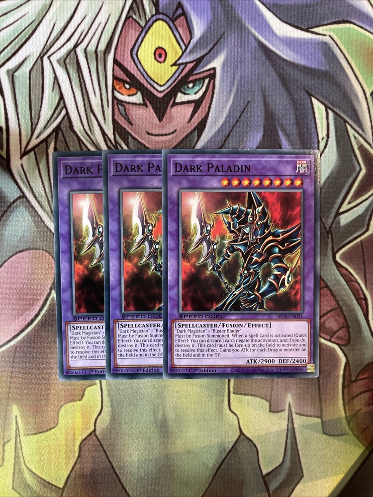 This playset is mixed edition (you will receive a mixture of unlimited and 1st edition cards) Listing Template 2018 Home About Us Shipping Returns View Feedback Contact Us SBCB-EN021 x3 Dark Paladin Common Excellent Condition Yugioh These cards are in excellent condition as per the photos. You will receive a playset of cards. (x3) Thanks for viewing! Thanks for viewing! Please check out our eBay store for more cards and don’t forget to use our promotional offers to save money on multiple items! We offer COMBINED INTERNATIONAL SHIPPING! Please contact us and ask us to combine multiple cards in your shipment to save on postage costs! International tracking is included on all orders over £40. If you require a tracking code under this amount it is an additional charge of £6.50. Please add this to your order or contact us for more information. We provide postage free in the UK! All of our single cards are sleeved, with a taped Toploader to ensure maximum protection, and the best overall condition of your cards! Combined orders may in the same sleeve, unless requested otherwise. Do you want to earn extra cash for your old cards? Clear out your binder and send us photos of what you have! We will happily send you an offer and sort out postage to make it hassle free. There's no harm in trying! Message us now! Free UK Delivery! Honest Sellers. We take care of the cards so you can worry less about the fuss and more about winning, competing and collecting. About Us We started selling collectable cards over 6 years ago after selling off our own childhood Yu-Gi-Oh collection. We then rediscovered our passion for trading card games. Ever since, my brother and I have been trying to ensure that we provide a range of cards within the fastest possible time to ensure you can build your collection as you’d like it! With over 35,000 positive feedback we strive for quality customer service, aiming to give the service that we would like to receive and stock a huge inventory of new and vintage collectable cards from popular games such as Yu-Gi-Oh and Pokemon so there’s something for everyone! Our goal is that we hope to build a collectable card community as passionate about collectable cards as we are! Contact Us The best way to get in contact is through eBay’s ‘contact seller’ button where we’ll try to get back to you as soon as possible. Feedback We always prioritise your buying experience so you can shop without worry. Contact us if there’s any part of an order you were dissatisfied with as we hope to resolve any issues as soon as possible. Buy with confidence. View Our Categories