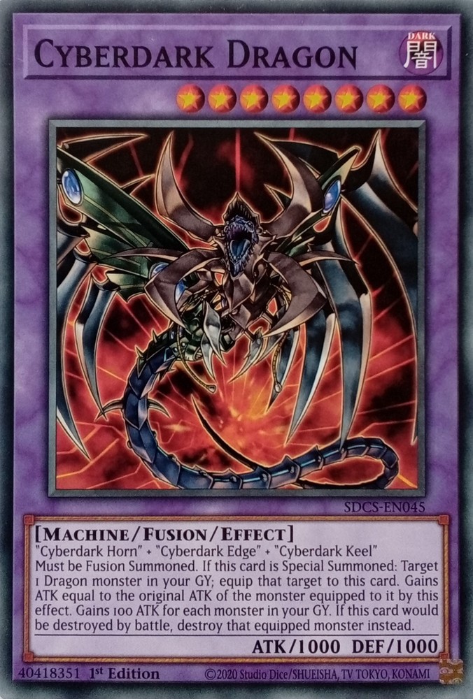 SDCS-EN045 CYBERDARK DRAGON COMMON 1ST EDITION ALL YU-GI-OH CARDS I SELL ARE KONAMI TOURNAMENT LEGAL. CARDS ARE ALL NEAR MINT TO LIGHTLY PLAYED CONDITION. POSTAGE IS FREE SO YOU CAN BUY AS MANY CARDS AS YOU WANT FROM US AND NOT PAY A PENNY POSTAGE. IF YOU HAVE ANY QUESTIONS PLEASE FEEL FREE TO CONTACT ME. Track Page Views With Auctiva's FREE Counter