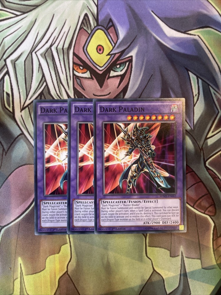 This playset is mixed edition (you will receive a mixture of unlimited and 1st edition cards) Listing Template 2018 Home About Us Shipping Returns View Feedback Contact Us SDMY-EN043 x3 Dark Paladin Common Excellent Condition Yugioh These cards are in excellent condition as per the photos. You will receive a playset of cards. (x3) Thanks for viewing! Thanks for viewing! Please check out our eBay store for more cards and don’t forget to use our promotional offers to save money on multiple items! We offer COMBINED INTERNATIONAL SHIPPING! Please contact us and ask us to combine multiple cards in your shipment to save on postage costs! International tracking is included on all orders over £40. If you require a tracking code under this amount it is an additional charge of £6.50. Please add this to your order or contact us for more information. We provide postage free in the UK! All of our single cards are sleeved, with a taped Toploader to ensure maximum protection, and the best overall condition of your cards! Combined orders may in the same sleeve, unless requested otherwise. Do you want to earn extra cash for your old cards? Clear out your binder and send us photos of what you have! We will happily send you an offer and sort out postage to make it hassle free. There's no harm in trying! Message us now! Free UK Delivery! Honest Sellers. We take care of the cards so you can worry less about the fuss and more about winning, competing and collecting. About Us We started selling collectable cards over 6 years ago after selling off our own childhood Yu-Gi-Oh collection. We then rediscovered our passion for trading card games. Ever since, my brother and I have been trying to ensure that we provide a range of cards within the fastest possible time to ensure you can build your collection as you’d like it! With over 35,000 positive feedback we strive for quality customer service, aiming to give the service that we would like to receive and stock a huge inventory of new and vintage collectable cards from popular games such as Yu-Gi-Oh and Pokemon so there’s something for everyone! Our goal is that we hope to build a collectable card community as passionate about collectable cards as we are! Contact Us The best way to get in contact is through eBay’s ‘contact seller’ button where we’ll try to get back to you as soon as possible. Feedback We always prioritise your buying experience so you can shop without worry. Contact us if there’s any part of an order you were dissatisfied with as we hope to resolve any issues as soon as possible. Buy with confidence. View Our Categories