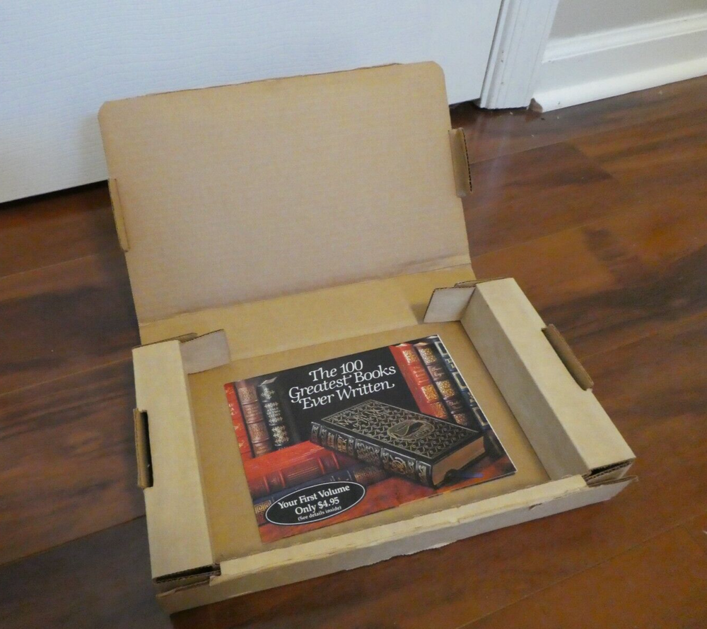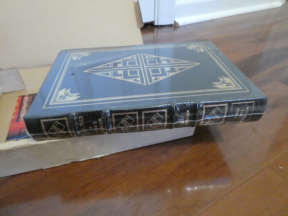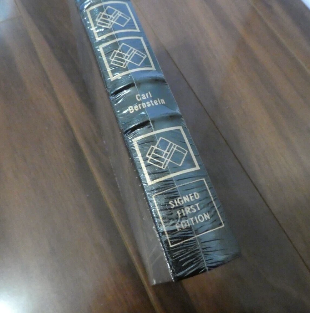 This is a VERY RARE leatherbound SIGNED and SEALED first edition of Carl Bernstein's Loyalties: A Son's Memoirs released by Easton Press and the Danbury Mint. This is part of the 100 Greatest Books Ever Written set. It is leatherbound with 22kt gold accent and gilded pages. This is NEW, STILL SEALED and in the ORIGINAL cardboard mailer with the original leaflet for the collection. As you can see from the photos, the cardboard mailer shows significant wear from being in storage for over 30 years. Please note that because of the condition of the mailer, it is essentially being included for free. If you have any questions or would like any additional details, please ask and I'll be happy to provide them.