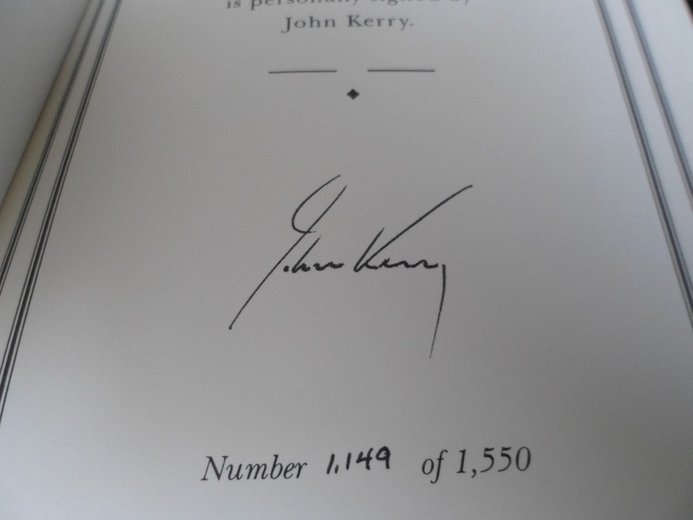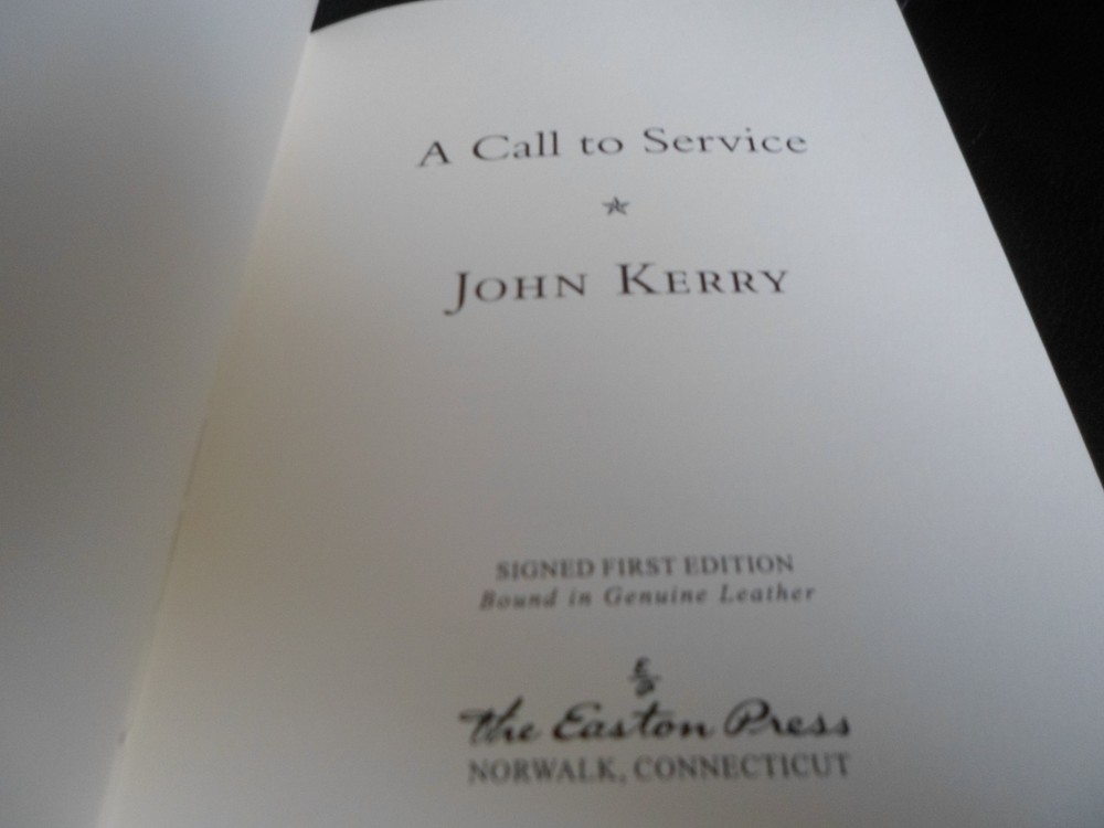This is a leather bound signed numbered first edition of former Senator and Secretary of State John Kerry's best-seller - "A Call To Service" . The book is new, unread and in great condition. Signed by the author on the limitation page, it also includes a signed and dated certificate of authenticity, and the publisher's note card. This is number 1149 of only 1550 copies ever printed of this limited first edition. Easton Press books are the golden standard in the publishing industry, highly collectible and lasting generations. Easton Press Full Genuine Leather Dubbed Spine Accented Wit 22 kt. Real Gold Satin Ribbon Page Marker Distinctive Cover Design Gilded Page Edges To Protect Against Humidity High Quality Acid - Free paper Smyth-Sewn Pages Silk-Moire Endleaves I combine multiple items for savings on shipping charges. I ship worldwide. Please ask about international shipping charges and/or different shipping options.Thank you!