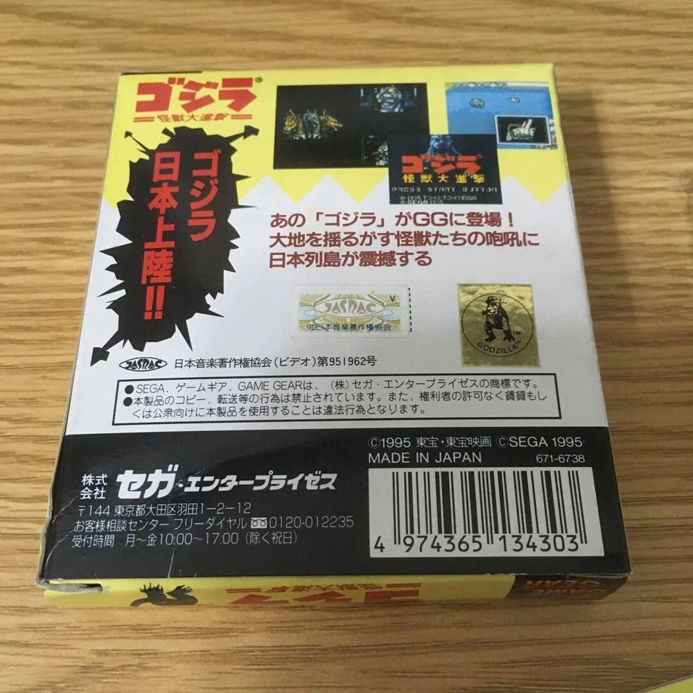 SEGA Godzilla Kaiju Daishingeki Game Gear Software Operation confirmed Used Description This set includes the box, cartridge, instruction manual, and leaflet. There are four ears left on the box. The box is in good condition, overall it's in mint condition. There are no missing pages or writing in the instruction manual. Operation confirmed. Shipping We only Please pay within 5 days. We always send the item with a tracking number. So please place an order without any concern on delivery. You can always track the delivery status. Shipping is only available to the address registered in eBay. If you want us to send another address, please change your address on eBay and then place an order. Shipping is available from Monday to Friday. Weekends are not available because freight companies are closed. International Buyers - Please Note: Import duties, taxes, and charges are not included in the item price or shipping cost. These charges are the buyer's responsibility. Please check with your country's customs office to determine what these additional costs will be prior to bidding or buying. 100% Guaranteed. my goal is to make your experience with me as stressfree as possible.Items that are faulty beyond the description given on our auction site,please contact me. 100%customer satisfaction gauaranteed. Hawever,custums who abuse eBay's feedback system and leave a complaint before contacting me are not eligidle for a refund. Important notice We guarantee all the displayed items are authentic. and there are no pirated or illegally copied items. Please feel reassured. If you have made two or more successful bids,we combine those items. We package and seal those successfully bid items properly when dispatching. Note: Inport duties, taxes and charges are not included in the item price or postage charges are the buyer's responsibility. Please check with your country's customs office to determind what there additonal costs will be,prior to bidding / buying.