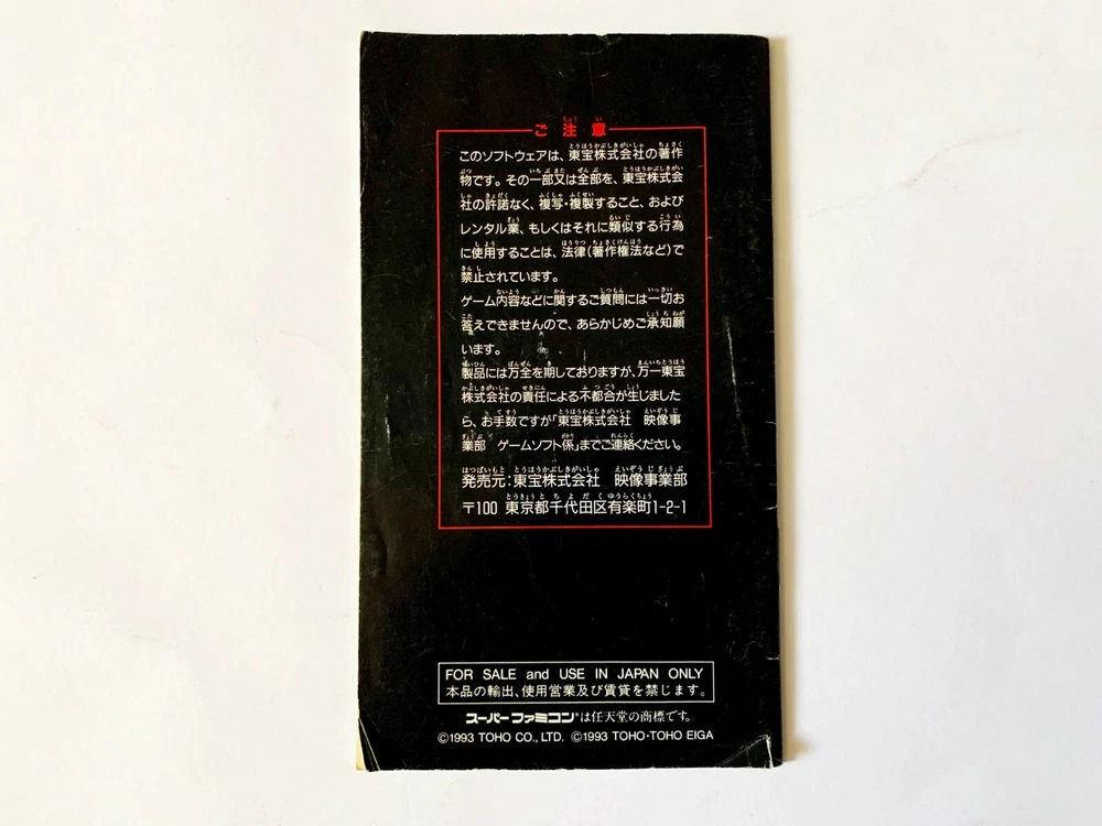 Nintendo Super Famicom SNES "Super Godzilla" Description Platform : SNES Super Famicom (Japanese, NTSC-J) Include : Box, Case, Cartridge, Manual Language : Japanese Working Condition : Tested Condition : Used ~ Good Box : B (Scratches, Indentaion) Case : B (Scratches, Indentation, Crack) Cartridge : B+ (Scratches, Dirt) Manual : B (Wrinkle) ============== **Condition Evaluation RANK: New-S-A-B-C-D-E-Bad S: Excellent A: Very Good B: Good C: Acceptable D: Pretty Dirty E: Broken ============== *Please check the images. Even region-free games may not work with the North American version or PAL etc. There is no battery compensation when there is a backup battery. Shipping We Ship by “ Japan Post ” ~ EMS or ePacket or ePacket-light. Shipping Time is about 7 to 30 days. However, deliveries may take longer depending on shipping conditions and the situation of the postal service in your country. Please note that deliveries may take longer than “estimated delivery date”. We will provide tracking number for delivery in all countries. If there is no contact, it will be subject to cancellation or case when 3 days have elapsed. Combine Shipping 1 Please put items in the cart if you order in bulk. 2 Please press the Request Total button. 3 We will send an invoice for bulk order. *Shipping fee is determined by weight and size. Total weight of Economy shipping and Standard Shipping is under 2.0 kg. if it exceeds the weight, it is EMS only. Notes Payment is PAYPAL only . Please make a payment within 5 days after bidding. Import duties, taxes and charges are not included in the item price or shipping cost. These charges are the buyer's responsibility. Please check with your country’s office to determine what these additional costs will be prior to bidding or buying. We can’t reply gifts or unreasonable requests such as declared amount. Other If you have any questions, anytime contact me! Thank you for Watching.