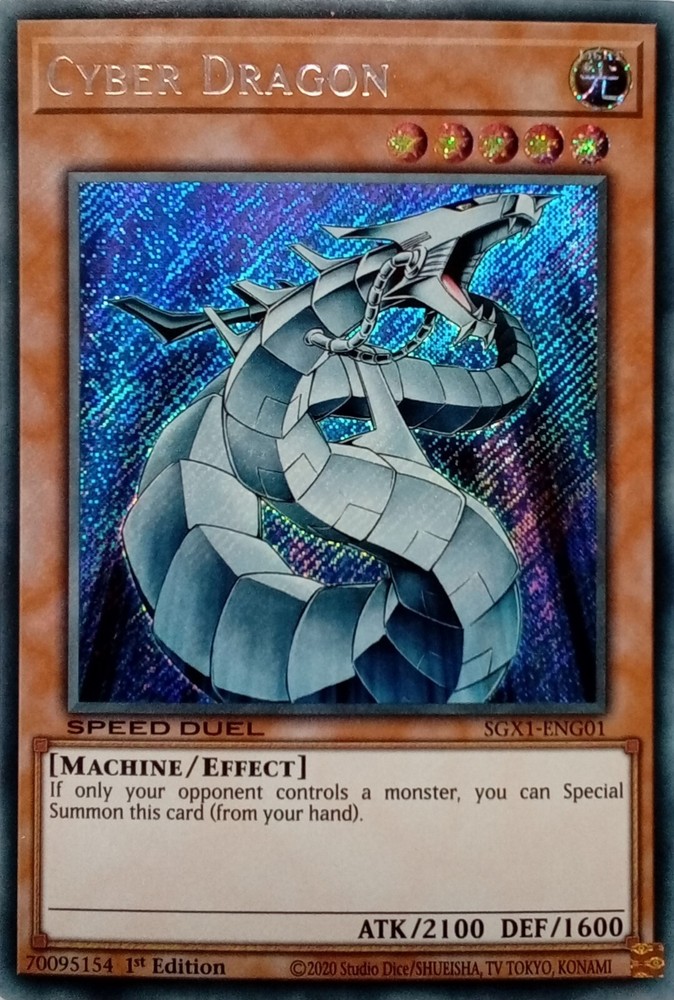 SGX1-ENG01 CYBER DRAGON SECRET RARE 1ST EDITION ALL YU-GI-OH CARDS I SELL ARE KONAMI TOURNAMENT LEGAL. CARDS ARE ALL NEAR MINT TO LIGHTLY PLAYED CONDITION. POSTAGE IS FREE SO YOU CAN BUY AS MANY CARDS AS YOU WANT FROM US AND NOT PAY A PENNY POSTAGE. IF YOU HAVE ANY QUESTIONS PLEASE FEEL FREE TO CONTACT ME. Track Page Views With Auctiva's FREE Counter