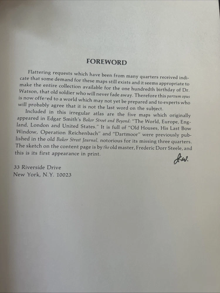 Like New The book being sold is the book in the photos. All books have been sanitized and there is no must or odor. Additional books can be purchased with combined shipping of an additional dollar. Ships fast- on the same or next day The Julian Wolff/Sherlockian Atlas is a rare and collectible leather-bound book featuring a new introduction by Hugh Pentecost. Written by Sir Arthur Conan Doyle, this 1st edition publication from 1984 is a valuable reference item for fans of the Sherlock Holmes character family. The book is illustrated and written in English, making it a unique addition to any collector's library.