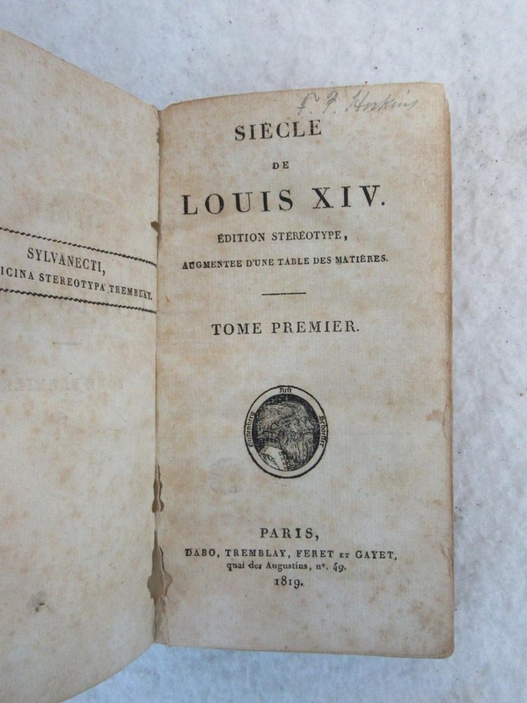 SIECLE DE LOUIS XIV Edition Stereotype Tome Premier 1819, Dabo, Tremblay, Feret et Gayet, Paris In good condition. Please examine photos for details. Condition: We strive to describe and photograph the condition of every item as accurately as possible. Photos are of the actual item that is being sold. Please examine the photos carefully for any condition details and possible flaws. Best Offers: We consider all offers in relation to current market values. We try to respond almost immediately to most offers. Most of our counteroffers are firm but we are open to bargaining. Shipping: We combine shipping. When ordering multiple items from us please request a total before paying. We charge postage based on weight plus $1 for each eBay listing. All of our orders are packed carefully to prevent damage during shipment. We ship most of our items within 24 hours. Contact Us: We are available 7 days a week and are happy to answer any questions you may have. The complete eBay Selling Solution.
