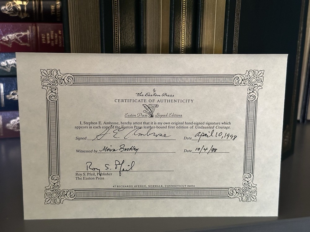 This stunning SIGNED 3-vol set from Easton Press is a collector's dream! The Lewis & Clark Expedition books by Ambrose are in flawless condition—no bookplates, smoke-free home. The rare set includes a COA and will be meticulously packaged for secure shipping. With 100% positive feedback, you can trust this purchase will exceed expectations. A true treasure for history lovers!