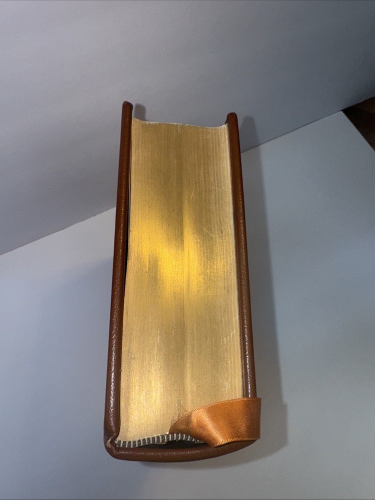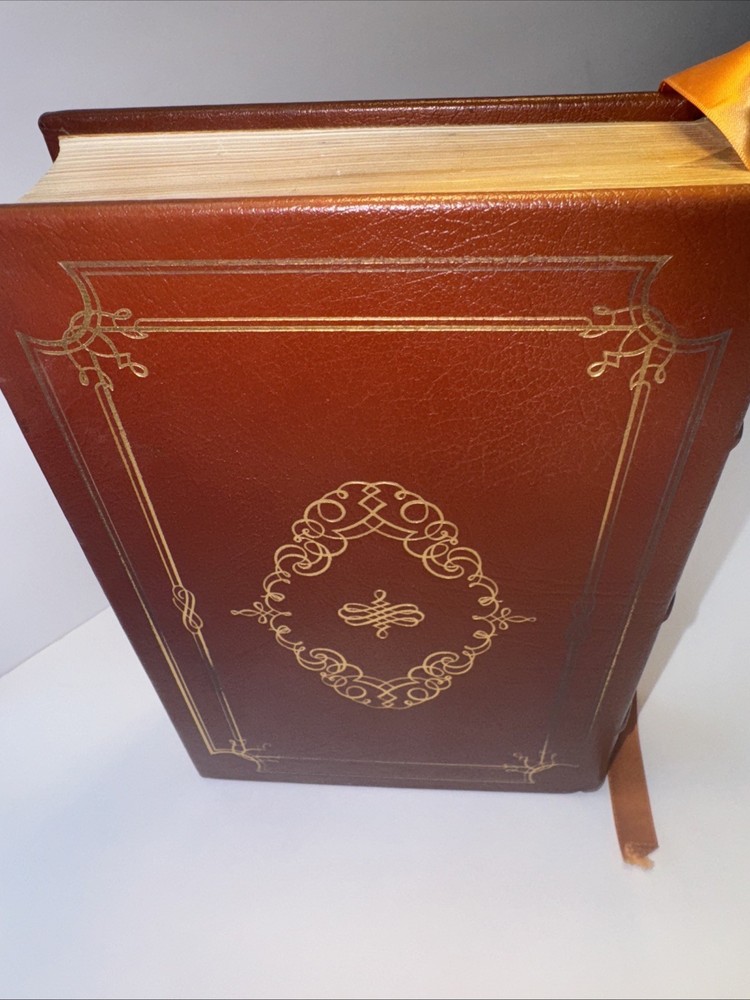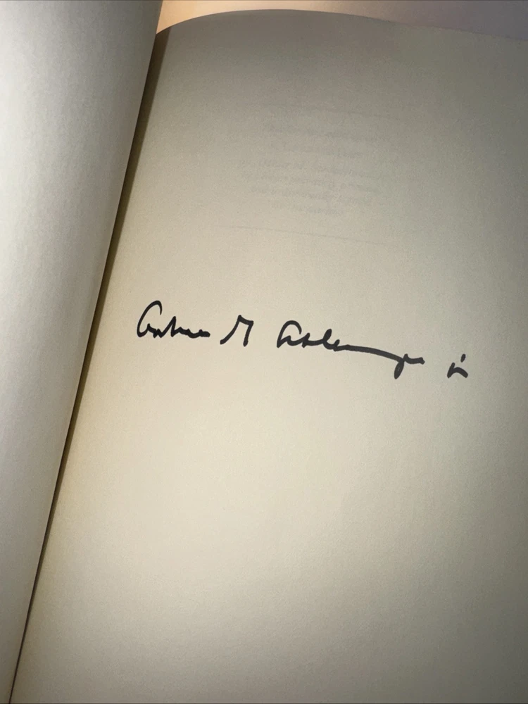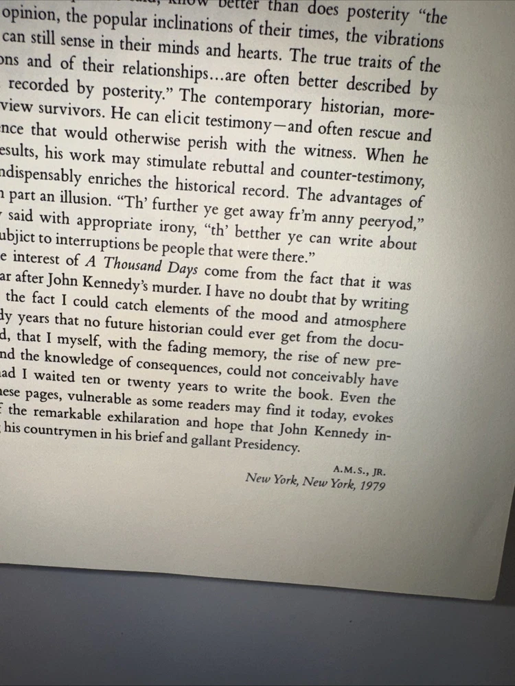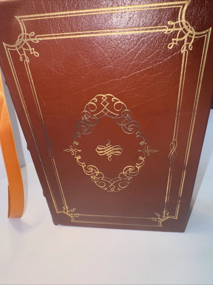 1st Edition Leather Binding 22k gold gilding on pages Burnt Orange Moire Silk end papers Satin Sewn in Bookmark Acid free paper Symth-Sewn binding Black and white photos The raised bands on binding ***Hand Signed copy*** “A Thousand Days “ Arthur M. Schlesinger, Jr. In memory of John Fitzgerald Kennedy Contains Original 1965 Houghton Mifflin Company printing ***Plus extra insight in 1979 from the Author. Illustrated by Bernard Fuchs Photographs by Jacques Lowe A Limited Edition from the Franklin Mint Corporation Spine in amazing condition never fully opened. Tight. Amazing condition Some discolor on front and rear. Did not try to clean. See pics for gilding. Very good condition.