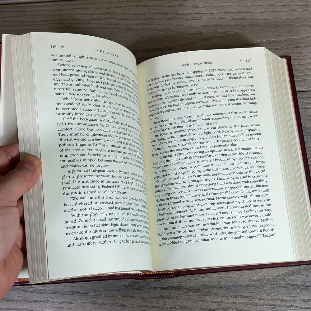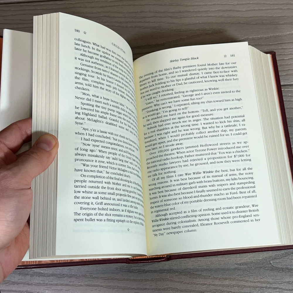 This signed Shirley Temple Black autobiography is a true collector's gem! Being #4496/5000 makes it extra special, and the condition is fantastic—just minor wear on the edges and cover. The pages are clean, and the signature adds so much value. Perfect for fans or collectors of Easton Press editions. Plus, the seller offers combined shipping if you grab more books—great deal! Highly recommend!