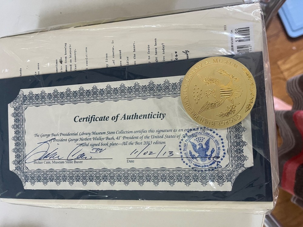 SIGNED EDITION Easton Press ALL THE BEST George H.W. Bush LEATHER 2004 With COA. Leather does absorb smells but currently all books are kept in a ventilated location to help remove this smell if present. Please let me know if you have any questions or concerns prior to purchasing. This is brand new never even displayed. The plastic cover is still on but has been opened for him to sign. There is a gold sea on the bottom of the plastic saying "Autographed Copy George Bush"