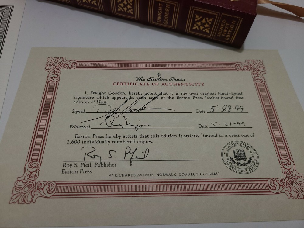 SIGNED Easton Press HEAT Dwight Gooden LEATHER 1ST Edition. Shipped with USPS Media Mail.
