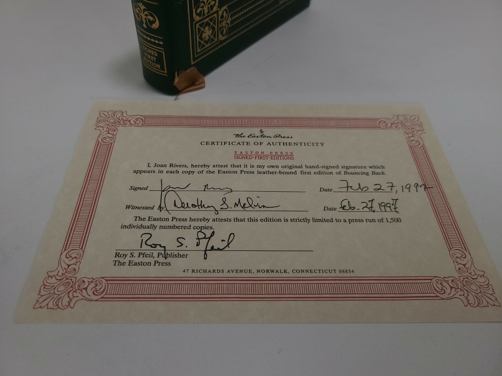 SIGNED FIRST 1st Easton Press JOAN RIVERS Bouncing Back Collector’s Edition #127. Shipped with USPS Media Mail.