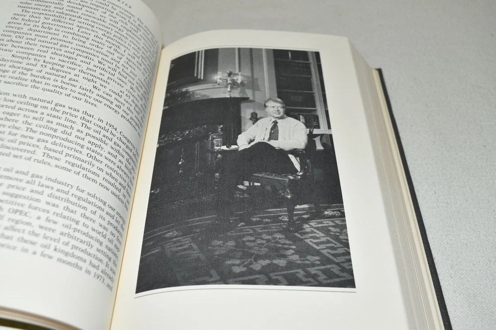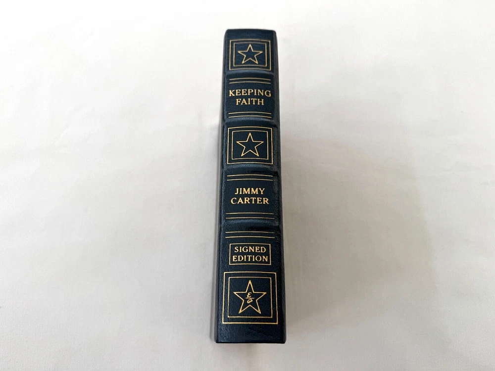 From the Easton Press Library of the Presidents Collector's Edition Series... Keeping Faith Memoirs of a President SIGNED by Former President Jimmy Carter Copyright 1982 by The Easton Press Bound in Premium Full Leather Collector's Edition This volume contains all of the classic Easton Press trimmings: Premium Leather Decorated Endleaves Distinctive Cover Design Hubbed Spine, Accented in Real 22KT Gold Satin Ribbon Page Marker Gilded Page Edges Long-lasting, High Quality Acid-neutral Paper Smyth-sewn Pages for Strength and Durability Beautiful Illustrations A very scarce title in any condition, this Signed Edition is in Fine and Unread condition. The front and back covers are both in near Perfect condition and the gilded page edges show hardly any wear at all! There are no writing, markings, bookplates, or other signs of prior ownership in this book. The binding is tight and square without spine lean. This book is part of the Library of Presidents published by Easton Press and comes complete with a Collector's Notes. It would be a beautiful addition to your Easton Press collection. Overall, this copy is a grade collector's book. This book is very elusive in this superior condition, as only a limited number of them were ever published, so now is the time to act. Hopefully you can add this book to your collection and enjoy it in the years to come... Please Email Me With Any Questions You Might Have! Shipping Info: Buyer to Pay Shipping and Handling International Bidders Pay Extra Shipping Good luck and happy bidding!