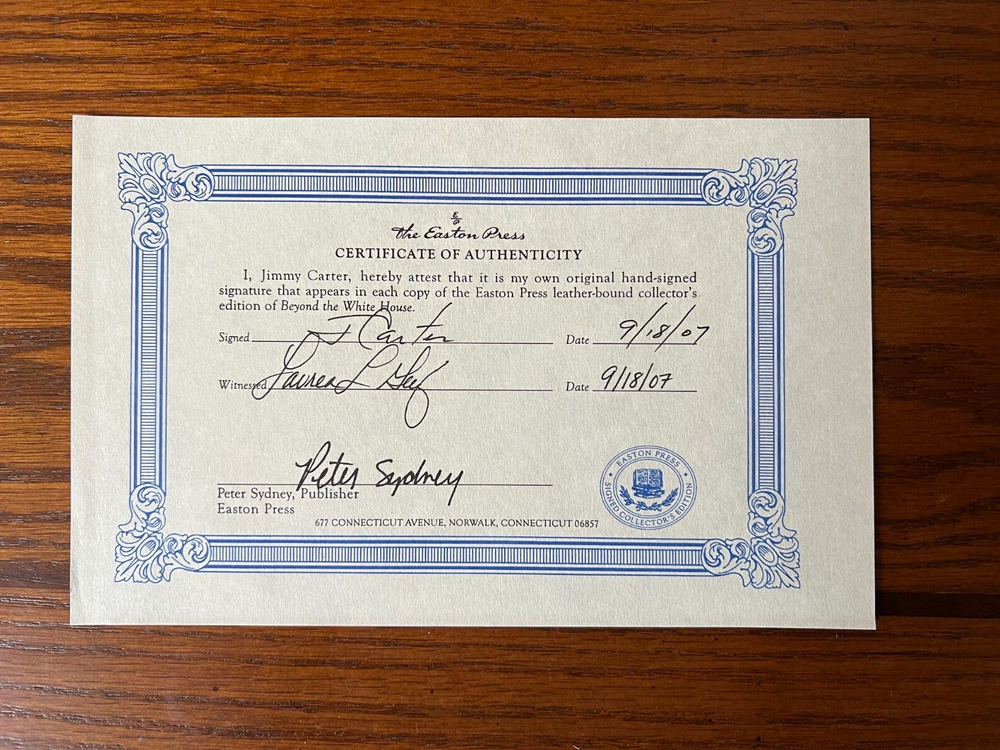 SIGNED Jimmy Carter Beyond The White House Easton Press Autographed Book Signed by United States President Jimmy Carter Buyer agrees to pay $10 for shipping within the USA. I only ship within the USA!