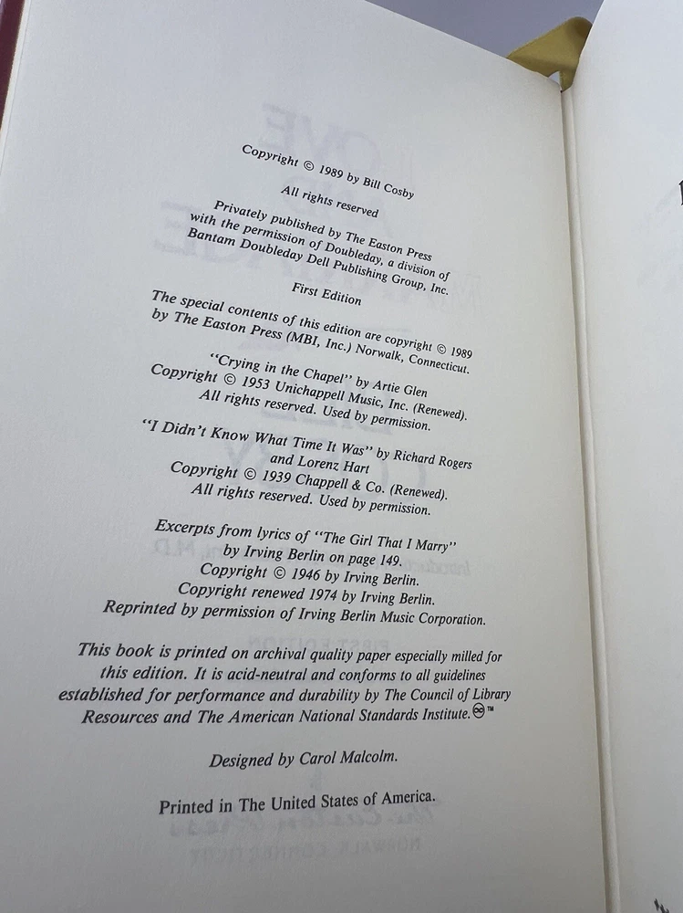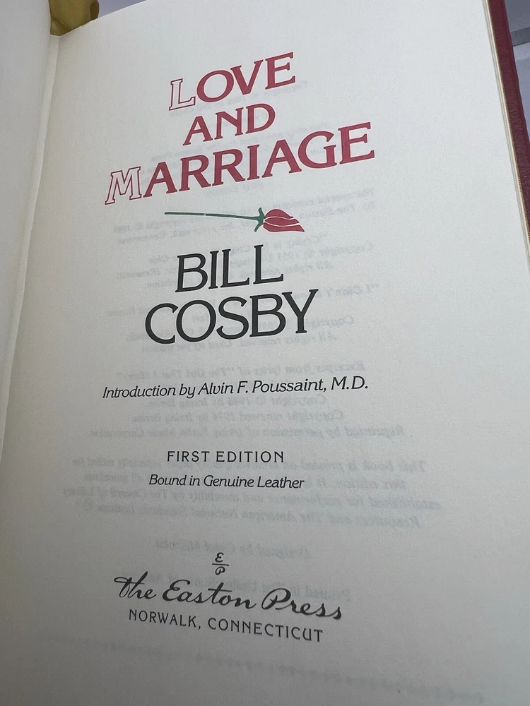 This is a rare and valuable signed copy of "Love and Marriage" by Bill Cosby, published by Easton Press in 1989. The book is a first edition and is in its original form. It is a biography and autobiography about the life of the author, with special attributes that make it a collectible item for literature enthusiasts. The book is in English language and was printed in the United States. The author's signature is prominently displayed on the book, making it a unique and personalized addition to any collection. This item is perfect for collectors and fans of Bill Cosby's work, and is a must-have for anyone who appreciates rare and valuable books.