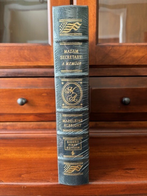 Madam Secretary: A Memoir By Madeleine Albright Published: Easton Press, Norwalk, Conn., 2003. Full contemporary leather. Three raised bands. Silk ribbon marker. Decorative gilt symbols on the panels and spine. The book is shrink-wrapped. This is one of 1,550 signed, numbered, limited edition copies. The book includes the signed and dated certificate of authenticity and the publisher's note card.