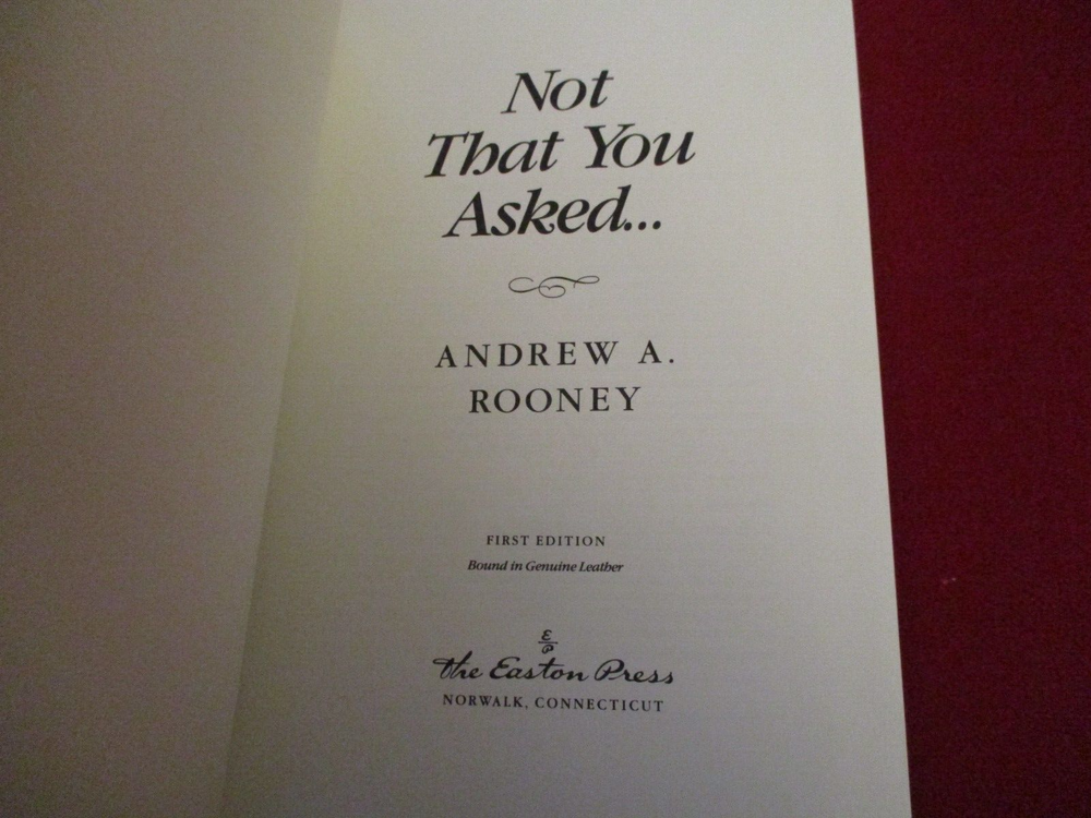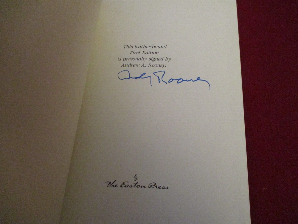 Leather bound book from The Easton Press in very good condition. Leather bound with gold embossing and gold gilded pages. A ribbed spine with a bound-in bookmark. Signed by Andy Rooney. Free media mail shipping.