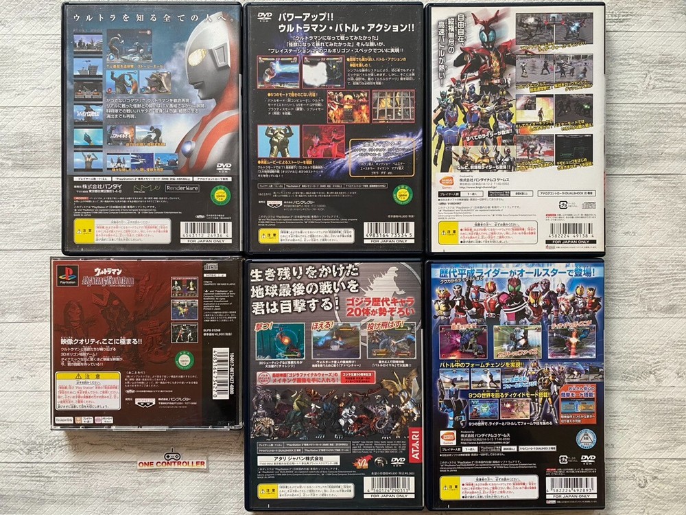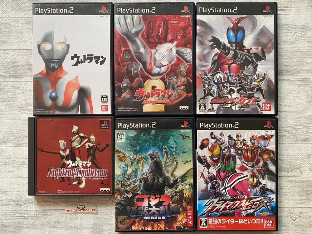 ๐Thank you for visiting our store!!๐ Safety Shipping Tracking Number Jet Wing Shipping! Japanese Good Items to the World! ๐ฎ๐ฎ๐ฎDescription๐ฎ๐ฎ๐ฎ Title: U ltraman & Ultraman Fighting Evolution 1 2 & Godzilla Save the Earth Kaiju Dairantou & Kamen Rider Kabuto & Climax Heroes 6games set Platform: SONY PlayStation 1 & 2 / PS1 & 2 Japan Region Code: NTSC-J (Works on Japanese PS1 & 2) Language: Japanese Condition: Used Disc Exterior: Good Case: Good Manual: Very Good (Brand New - Like New - Very Good - Good - Acceptable) Working: Tested and Working Accessories: Manual (Japanese), Case We have this item in our stock. What you see in photos are what you will get. PS1 & 2 console is not included. We're NOT responsible if this game software works in your video game console. This game was originally sold for users in Japan. Be sure to check for yourself if your game console really matches this game. We provide the matching chart below for your information. ๐ซ๐ซ๐ซ๐ซShipping๐ซ๐ซ๐ซ๐ซ We use e-packet of Japan Post . It usually takes about 2 weeks (around 14 days) to get to your country. ( It may take more days according to the postal situation in your country or countries that the parcel goes through. For example, it usually takes more days during Christmas time.) Tracking number will be provided. After shipping, you can check your parcel with the tracking number (Please enter it in the website of Japan Post.) by yourself and ask the post office of your country. ONLY ship to PayPal confirmed address. ( We cannot ship to another address. ) We will ship items after packing them very carefully with bubble wrap, expanded polystyrene, and so on. So, please wait for its arrival at ease. Please ask anything before bidding if you have any questions about the item. (English only) We sell items in good condition, but if you find any defects, please tell me within 3 days after delivery. If you return the item, please return it in all original packaging and accessories. ๐ช๐ช๐ช๐ชPayment๐ช๐ช๐ช๐ช Please complete payment within 3 days. ๐๐๐๐Other Term๐๐๐๐ International Buyers Please Note: Import duties, taxes and charges are not included in the item price or shipping charges. These charges are the buyer's responsibility. Please check with your country's customs office to determine what these additional costs will be prior to bidding/buying. These charges are normally collected by the delivering freight (shipping) company or when you pick the item up -?do not confuse them for additional shipping charges. We do not mark merchandise values below value or mark items as "gifts" - US and International government regulations prohibit such behavior.