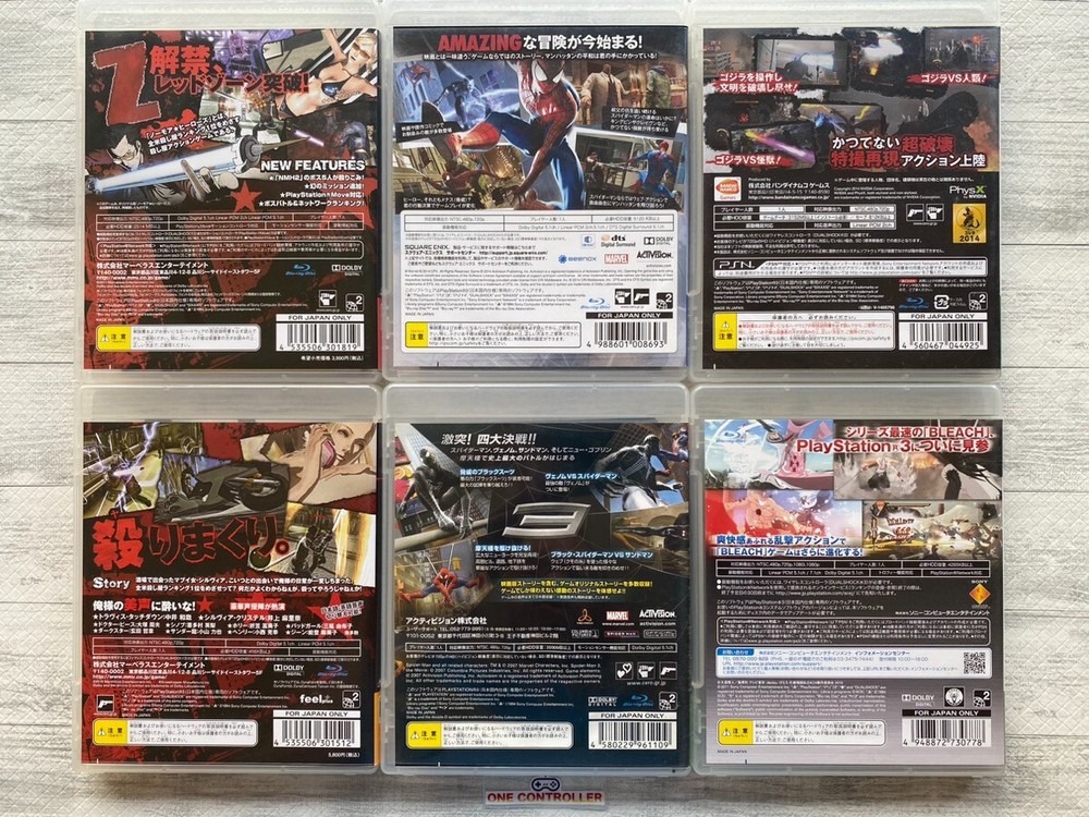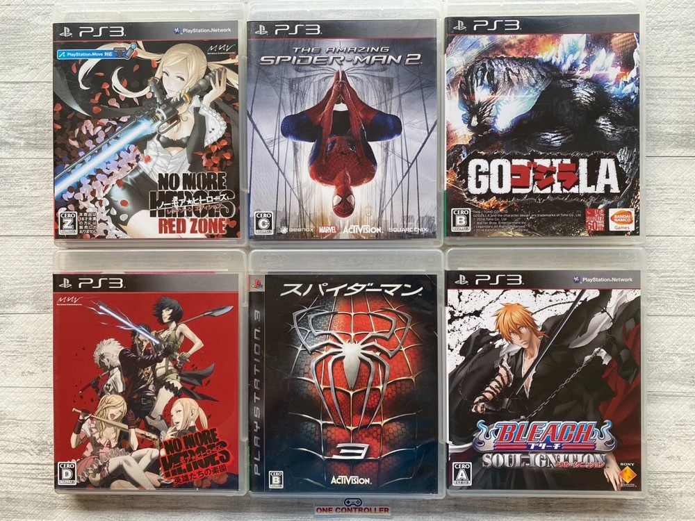 ๐Thank you for visiting our store!!๐ Safety Shipping Tracking Number Jet Wing Shipping! Japanese Good Items to the World! ๐ฎ๐ฎ๐ฎDescription๐ฎ๐ฎ๐ฎ Title: No More Heroes & Spider-Man 2 3 & Godzilla & Bleach Soul Ignition 6games set Platform: SONY PlayStation 3 / PS3 Japan Language: Japanese Condition: Used Disc Exterior: Very Good Case: Very Good Manual: Very Good (Brand New - Like New - Very Good - Good - Acceptable) Although this software is Region-free, its operation is not guaranteed on devices other than Japanese devices. Depending on your device, it may not be possible to play, so please note that before purchasing. PS3 console is not included. We're NOT responsible if this game software works in your video game console. This game was originally sold for users in Japan. Be sure to check for yourself if your game console really matches this game. We provide the matching chart below for your information. ๐ซ๐ซ๐ซ๐ซShipping๐ซ๐ซ๐ซ๐ซ We use e-packet of Japan Post . It usually takes about 2 weeks (around 14 days) to get to your country. ( It may take more days according to the postal situation in your country or countries that the parcel goes through. For example, it usually takes more days during Christmas time.) Tracking number will be provided. After shipping, you can check your parcel with the tracking number (Please enter it in the website of Japan Post.) by yourself and ask the post office of your country. ONLY ship to PayPal confirmed address. ( We cannot ship to another address. ) We will ship items after packing them very carefully with bubble wrap, expanded polystyrene, and so on. So, please wait for its arrival at ease. Please ask anything before bidding if you have any questions about the item. (English only) We sell items in good condition, but if you find any defects, please tell me within 3 days after delivery. If you return the item, please return it in all original packaging and accessories. ๐ช๐ช๐ช๐ชPayment๐ช๐ช๐ช๐ช We Accept PayPal Only. Please complete payment within 3 days. ๐๐๐๐Other Term๐๐๐๐ International Buyers Please Note: Import duties, taxes and charges are not included in the item price or shipping charges. These charges are the buyer's responsibility. Please check with your country's customs office to determine what these additional costs will be prior to bidding/buying. These charges are normally collected by the delivering freight (shipping) company or when you pick the item up - do not confuse them for additional shipping charges. We do not mark merchandise values below value or mark items as "gifts" - US and International government regulations prohibit such behavior.