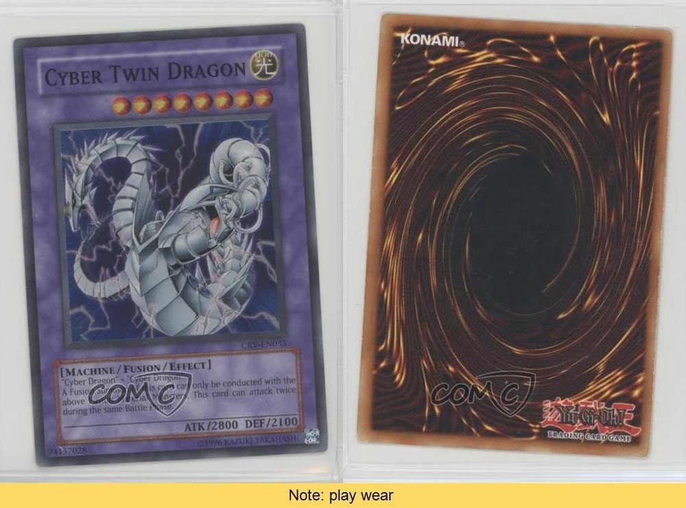 2005 Yu-Gi-Oh! - Cybernetic Revolution - [Base] - Unlimited #CRV-EN035 SR - Cyber Twin Dragon COMC Item: 42055856 CONDITION NOTE: play wear - YuGiOh Card - Featuring Cyber Twin Dragon Search for more: 2005 Yu-Gi-Oh! - Cybernetic Revolution Search for more: 2005 Yu-Gi-Oh! - Cybernetic Revolution - [Base] - Unlimited View all of our Listings Auctions Buy It Now About Us Located in the beautiful Pacific Northwest, COMC (Check Out My Cards) is the world's largest consignment service for trading card singles. More than 10,000 people have used our consignment service to list over 50 million trading cards. Find out how we can help you consign your items on eBay by contacting us through eBay messaging. COMC -- "The Safe & Easy Way to Buy & Sell" Raw Condition for Modern Cards Unless otherwise noted, raw modern cards are listed in Near Mint-Mint condition or better. A NM-MT card appears to be Mint at first glance, but upon closer inspection, may exhibit some of the following: minor print defects (e.g. roller marks, print line, dimple), minor scratches, slight edge wear, and slight corner wear. Centering is clearly visible in the images provided and does not factor into our condition assessment. Raw Condition for Vintage Cards Unless otherwise noted, raw vintage cards are listed in Excellent condition or better. An EX card may exhibit some of the following: minor rounding of corners, surface wear, print defects, light scratches, and slight edge wear/chipping. Centering is clearly visible in the images provided and does not factor into our condition assessment. Domestic Shipping Combined shipping for multiple items is available. To receive combined shipping, please ensure all desired items are in your eBay shopping cart before proceeding to checkout. eBay limits orders to 40 items per order. We automatically combine multiple orders placed on the same day. If you place multiple orders on the same day, please contact us to request a refund of applicable shipping costs. Signature confirmation may be required on invoices over $400. All cards are protected and shipped securely. International Shipping COMC offers eBay's International Shipping (EIS) for international orders under $2,500* (see country exceptions below). All duties and import fees are paid at checkout; in the rare event that there are additional import fees upon delivery, these are borne by the buyer. EIS packages route through a shipping hub in Erlanger, KY before shipping to their final destination. Please note that EIS does not allow for combined shipments. The shipping rates are determined by eBay and cannot be adjusted. *Maximum sale price exceptions: Colombia, Kuwait ($2,000); Taiwan ($1,539); Chile, Costa Rica, Guatemala, Honduras, Trinidad and Tobago ($1,000); Antigua and Barbuda, Aruba, Belize, Dominica, Grenada, Philippines, Saint Kitts and Nevis, Saint Lucia, Montserrat, Turks and Caicos Islands ($500); Dominican Republic, El Salvador ($200). Please request a shipping quote through eBay messaging for orders that exceed the maximum sale price supported by eBay's International Shipping. You will be responsible for all duties and import fees for international orders shipped outside the EIS. All cards are protected and shipped securely. Payment COMC does not accept offers on our cards through our eBay storefront. COMC utilizes eBay’s managed payments system. If you are experiencing difficulties making a payment, please contact eBay for assistance. Return Policy Returns are only accepted on the rare occasion the item is not as described. If you are making a return, please initiate the return process through eBay so a mailing label can be provided for you. Prior to listing, our expert team carefully assessed this item to represent it accurately. Please review the description and high-definition images prior to purchasing to ensure this item meets your satisfaction. We welcome you to contact us if you have further questions about this item. Trust and Integrity COMC carefully assesses each item consigned to us to prevent fraudulent items from entering the marketplace. If you believe an item offered on COMC may be fraudulent, please contact us with details so we can investigate the issue. Items we determine are outside our supported items policy may be removed. Last Modified: 5/31/2025 10:30:24 PM PDT