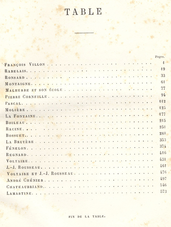 SAINTE-BEUVE, CHARLES AUGUSTIN. Galerie des Grands Ecrivains Francais, Paris: Garnier Freres, 1878. Quarto, pp. 2 (ads), 584, 1, red morocco boards with gilt lettering and decoration in 6 compartments on spine, 16 engraved plates under tissue guards, all edges gilt, former owner's name on flyleaf, all text in French. The great 19th-century critic profiles 21 of France's best writers, with portraits by de Staal, Philippoteaux and others. Condition of this book Upper panel stained, chip at head of spine, extremities worn, overall sound. Leaves clean and tight, scattered foxing, images very good.