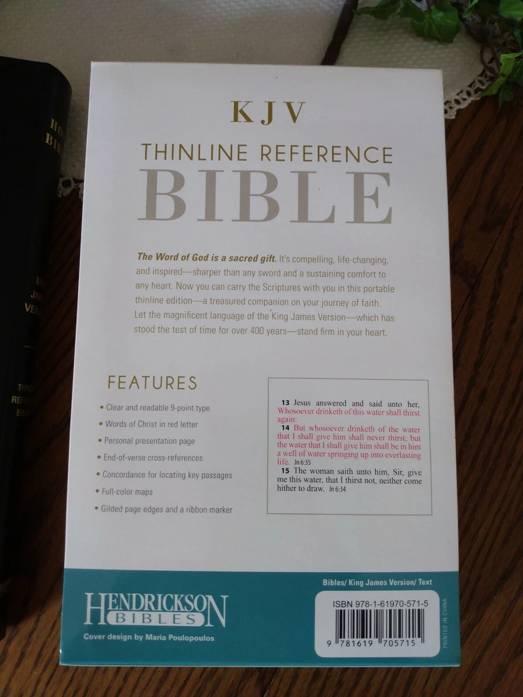 King James Version KJV portable thinline size end of verse cross-references personal presentation page full color maps gilded page edges Red Letter for Christ's words 1 ribbon marker 9 point font measurements: 9" x 5.75"x 1" Concordance for locating Key passages Feel free to ask questions. I try to return and answer your questions in a timely manner and as soon as I am able. If for any reason you are not satisfied with your purchase, you may return the item for a refund. If the item is not as described or was damaged in shipping, I will even pay return shipping. If, however, you simply have changed your mind about the purchase, I will still issue a refund, but I cannot pay for the return shipping or the cost of shipping it initially. Please buy responsibly :) Visit my eBay store at aboundingjoy66 If you are purchasing several items from my store, message me and I will try to get a shipping discount for you. International customers/Global shipping customers - If you would like to combine shipping and save lots of money when purchasing several items, message me BEFORE you purchase the items. I cannot combine shipping after the purchase has been made. NO RETURNS ACCEPTED. You may not return them just because you decided you didn't like it or found a better price. Please buy responsibly. For Bibles: I LIST FONT SIZE FOR MOST BIBLES AHEAD OF TIME, so please check out the font with your computer or phone ahead of time. If I sent you an incorrect item, I will refund you when you ship it back.
