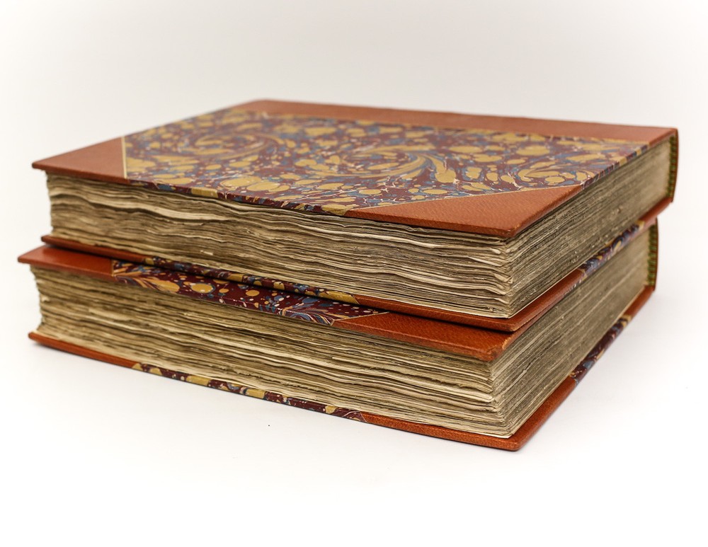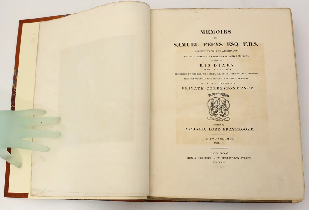 Item Description: Pepys, Samuel 'Memoirs of Samuel Pepys, ESQ. F.R.S. Secretary to the Admiralty, Vol 1 & 2, Henry Colburn, London, 1825. 1st Edition Hardback, 3/4 leather and marbled cloth boards 5 raised spines w/ gold lettering. Uncut pages, rare. Vol 1 498pp, Vol 2- 294pp. Total Weight 14 pounds. SCH 292-297 Approx. Measurements: ea 9.75"x12.75"x2" thick Condition: Very Good Condition. Sunned spines, lightly rubbed edges - rebacked? Scattered foxing to pages, some dust related soiling to edges. Shelf wear to slipcase. We have a fine selection of quality items for sale at Amphora Art & Antiques. International as well as domestic customers are welcome - please contact us with questions regarding shipping or listings, and we will assist you quickly. All items can be inspected in-person or are available for pickup from our large Wilmington, CA warehouse with no additional fee or charge. The authenticity of all items listed are guaranteed to be as represented - all efforts are taken to ensure accurate and descriptive condition reports and photographs. We reserve the right to use another shipping carrier other than what is listed to ensure your purchase arrives safely. Fedex cannot ship to a P.O. Box. Please contact us before or upon purchase if you have a preferred shipping carrier.
