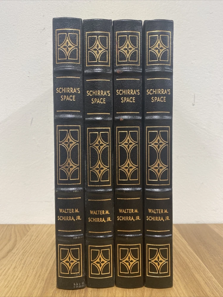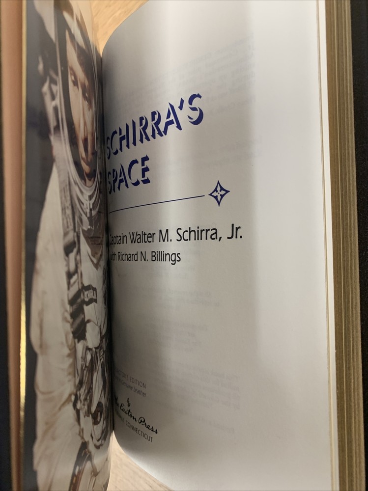 Schirra’s Space, Walter M Schira Jr, Easton Press, Collector Edition NOT SIGNED. **PLEASE NOTE THAT THESE COPIES ARE NOT SIGNED** It appears that the signed page has been ripped out. Please see photos. This listing is for ONE copy of “Schirra’s Space”. The condition of the books will vary. Some may have general signs of wear and possible silver stains and scuffs along the gilded edges, and possible fading of the gold on the covers. Other books in “acceptable” condition may include all of the above and may have loose binding and significant wear around the book. Books will be shipped on a first come, first serve basis with books in the “best” condition being shipped first and the less pristine conditioned books being saved until the end of the quantity. Please see the listing photos for condition possibilities. Please feel free to message me with any questions regarding this book, or if you’d like to see more photos of this book. Final sale no returns. Shipped via Economy Mail. F17