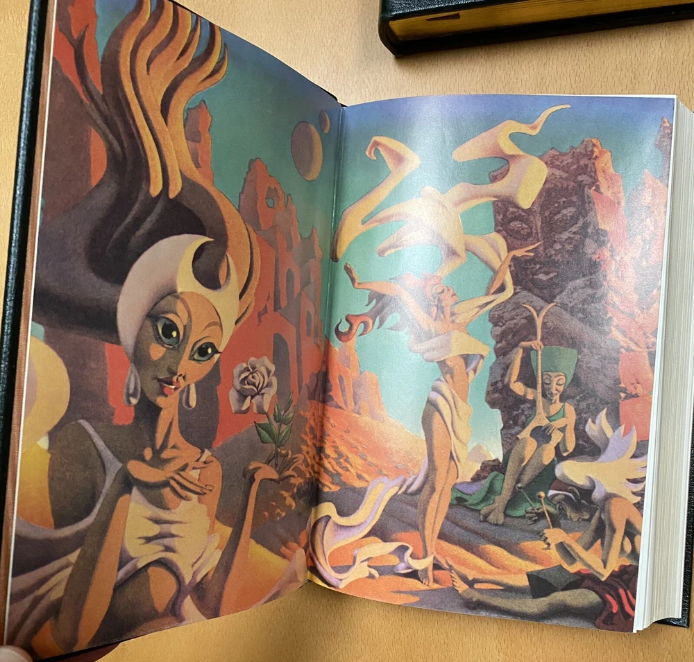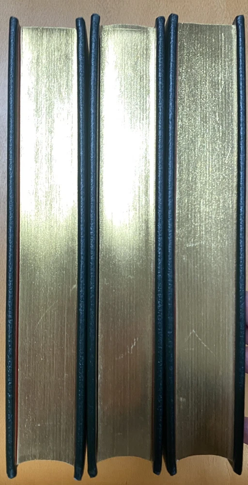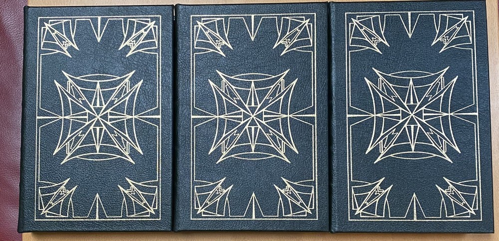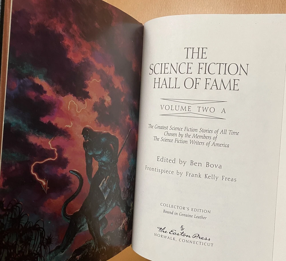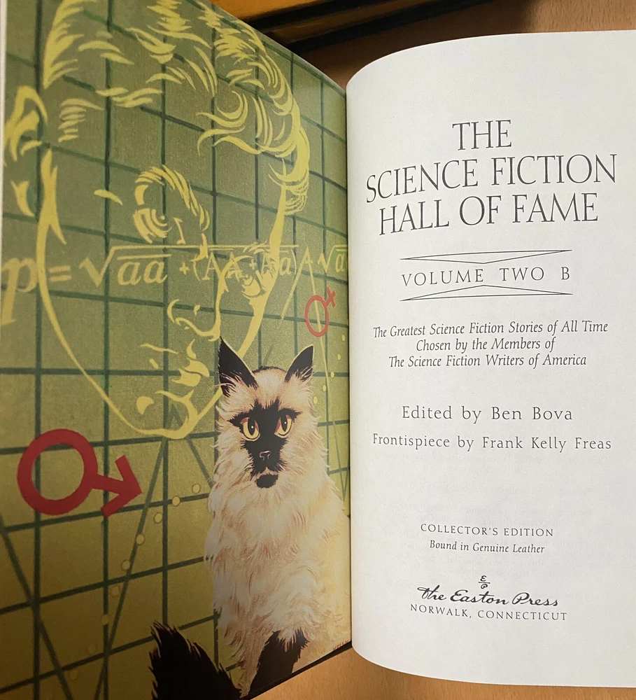 This is the 3 volume "Science Fiction Hall of Fame"", edited by Ben Bova and featuring the works of Asimov, Williamson, Heinlein, Bradbury, Clarke, Wells, and so many others. Fantastic set. Published by Easton Press and in excellent unread condition from a non smoking home. Has original flyer. Unsigned Easton Press bookplates on silk moire fabric. Unread, with some scratching on front gilt edge, one white dot on a gilt edge. All else very nice. Paypal only.
