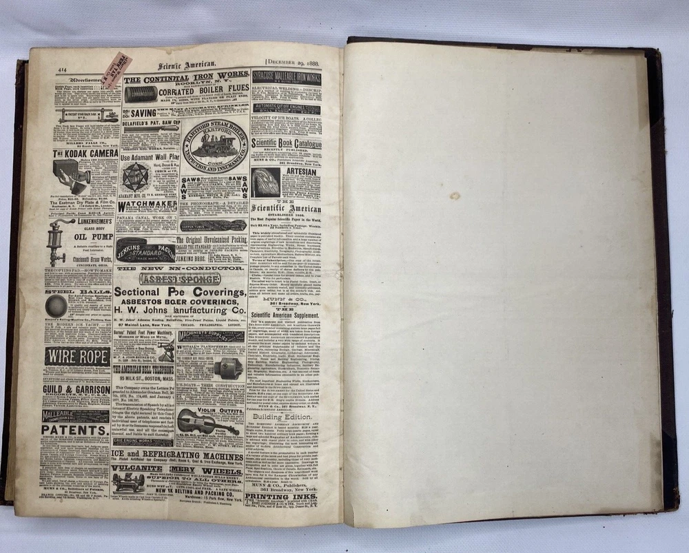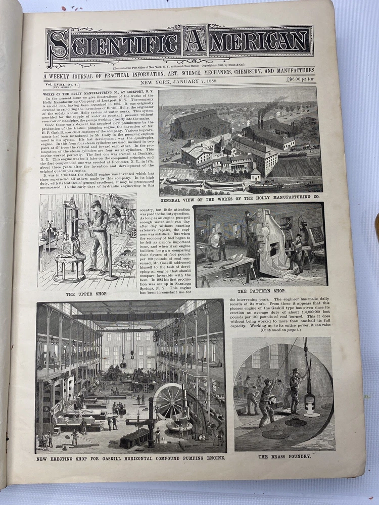 Title : American Scientific Volume LVIII Publisher : Munn and Company - New York Special Attributes : Leather Cover - Bound Material Publish Date : 1888 January - June Condition : Good Condition DESCRIPTION : Please see pictures for description. Buyer pays for USPS Media Mail Only No Returns Please Email Questions. Thank you ValueBuy